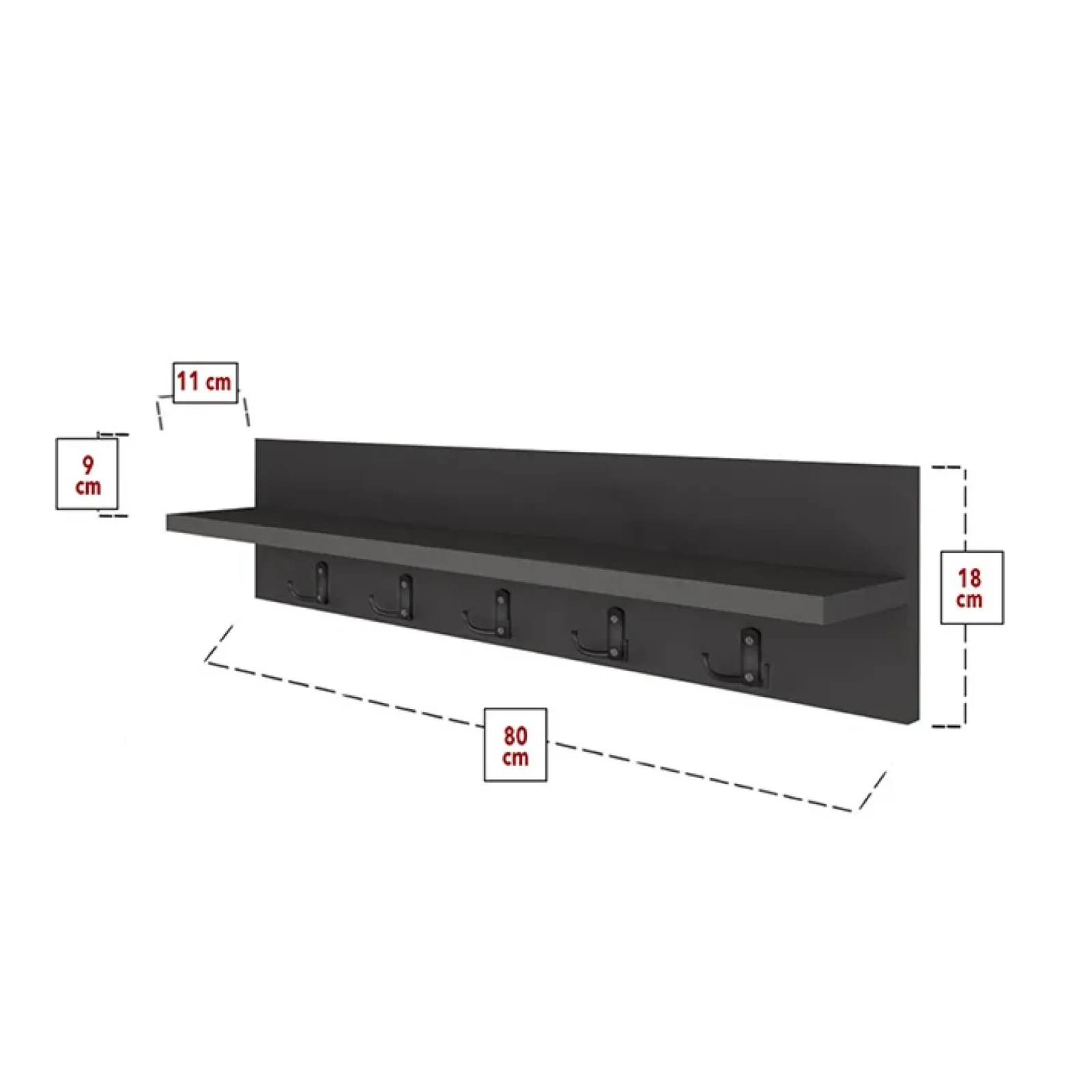 Appendiabiti da parete con mensola 80x18cm antracite Makira