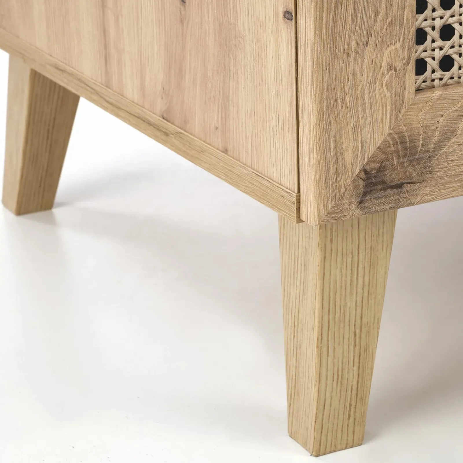 Pratico e dallo stile ricercato, l’armadio soggiorno Sombra arricchisce la collezione con un elemento contenitivo verticale, perfetto per mantenere l’ordine con eleganza. Realizzato con finitura rovere e nero, si adatta ad ambienti boho, scandinavi o moderni, portando calore e raffinatezza in soggiorno o in spazi multifunzionali.
