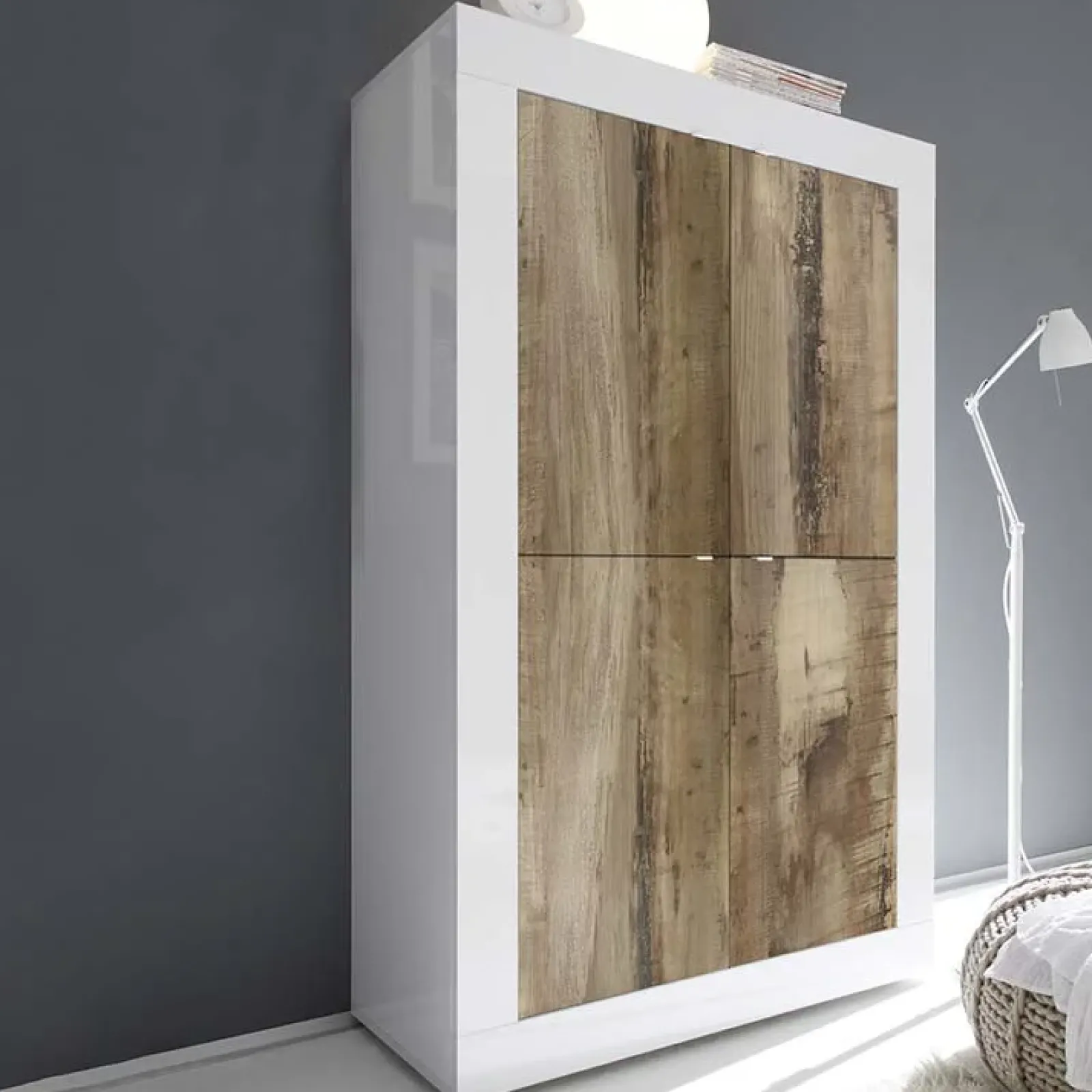 Garnero Arredamenti Armadi Soggiorno|Guardaroba-Armadio soggiorno 102x162h cm 4 ante moderno bianco lucido pero Eternity Rovere – Bianco Lucido