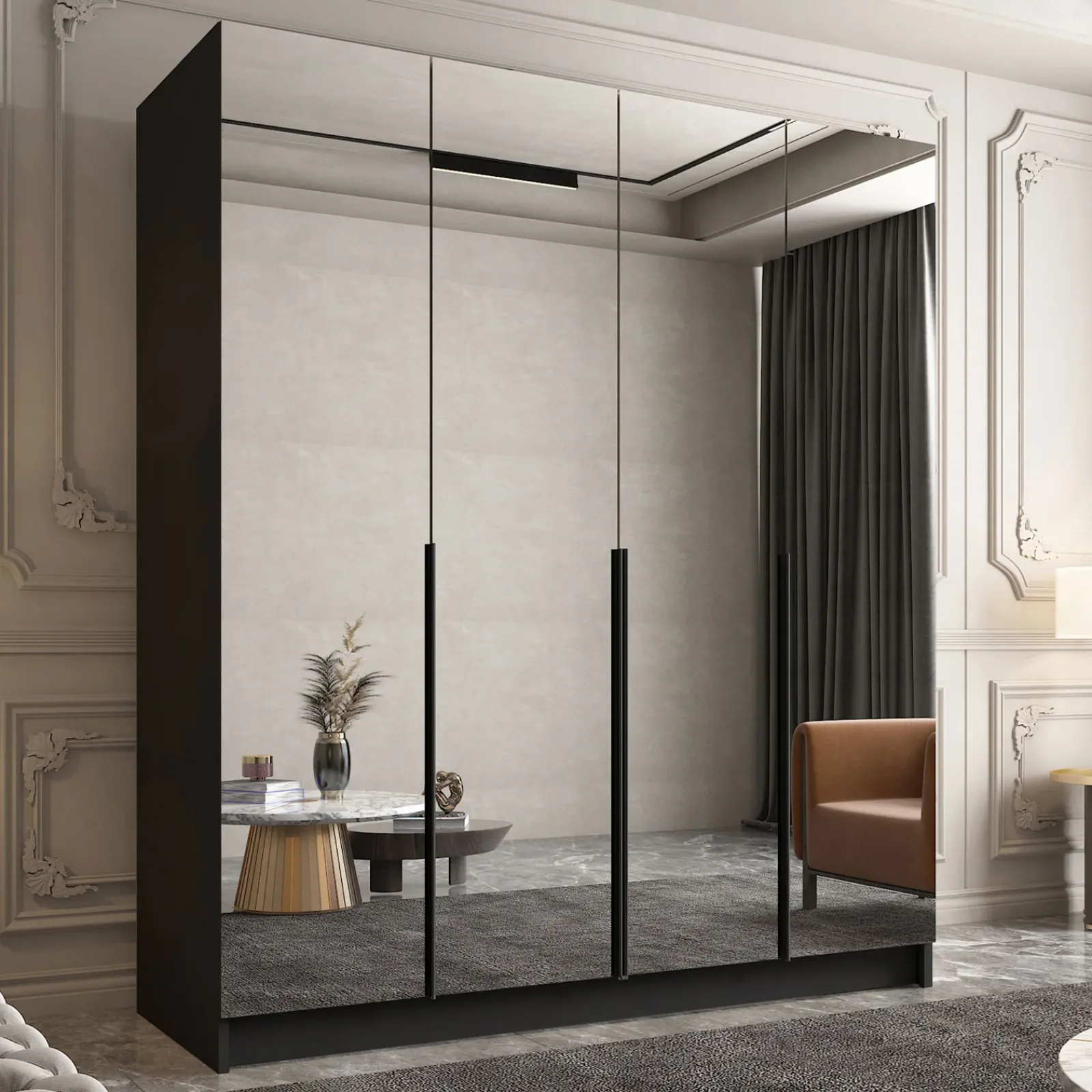 Armadio camera da letto 200x215cm 4 ante 4 specchi nero Glammy 4