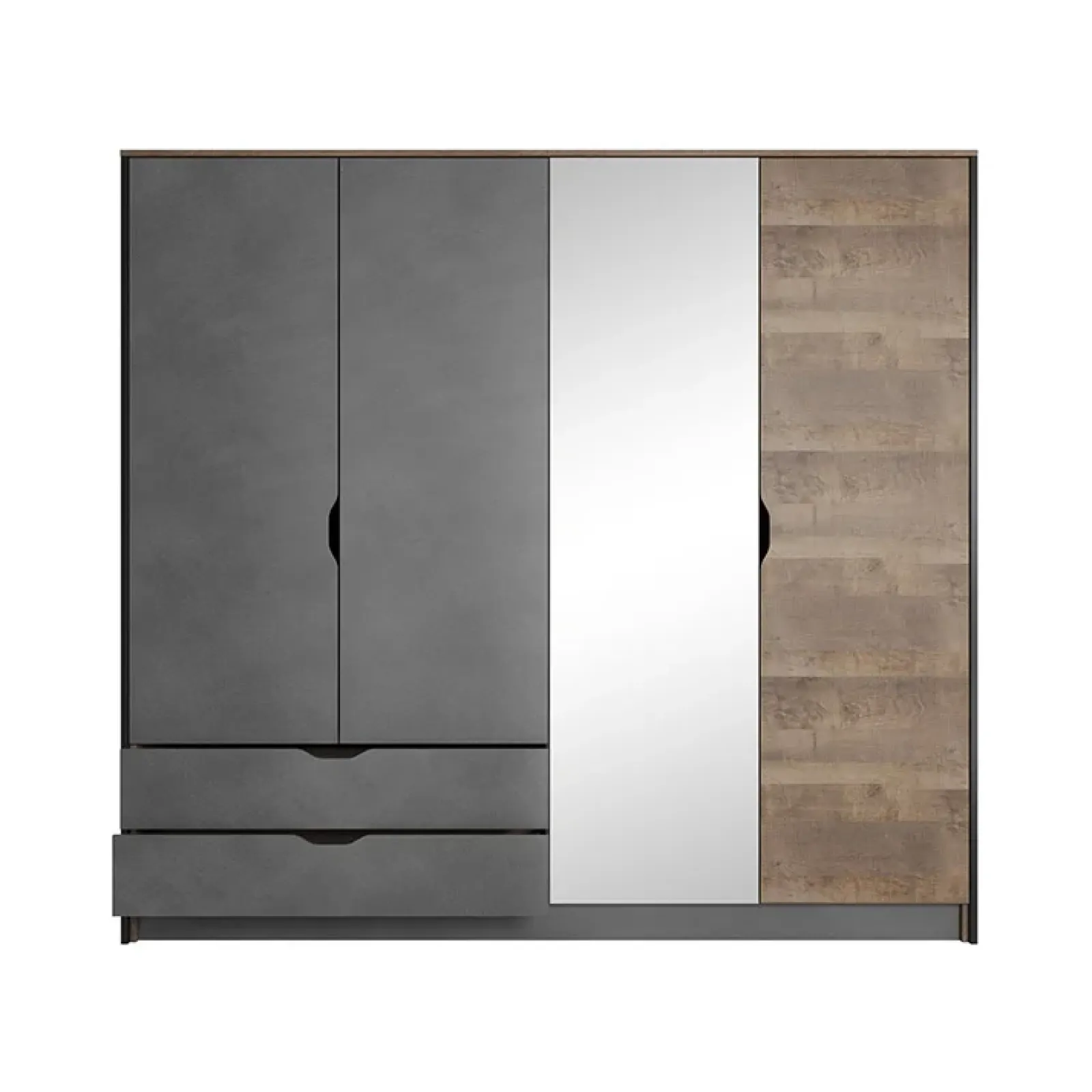 Armadio 220x204cm 4 ante con specchio grigio quercia Dable