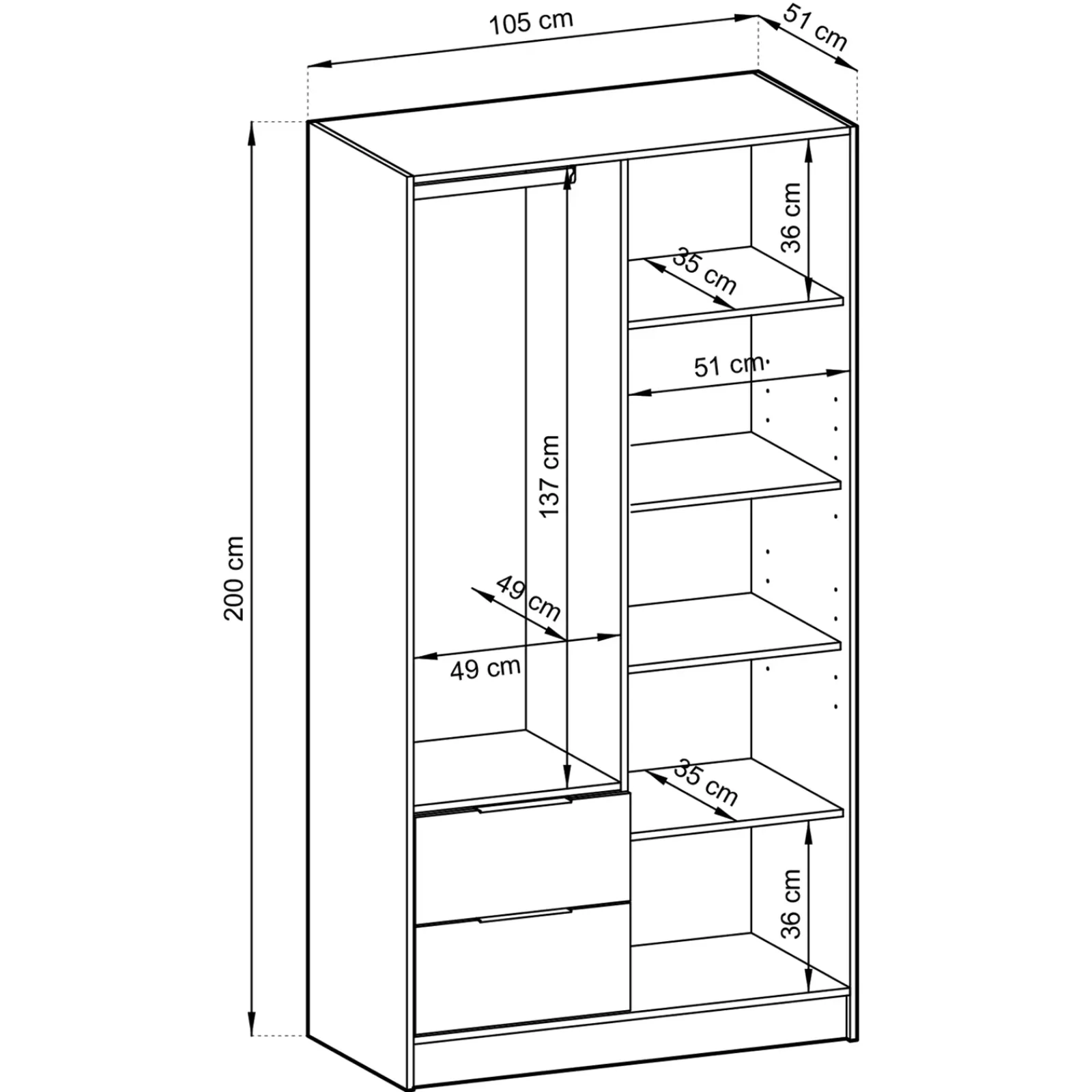 | Dimensioni | L.105 x H.200 x P.51 cm |