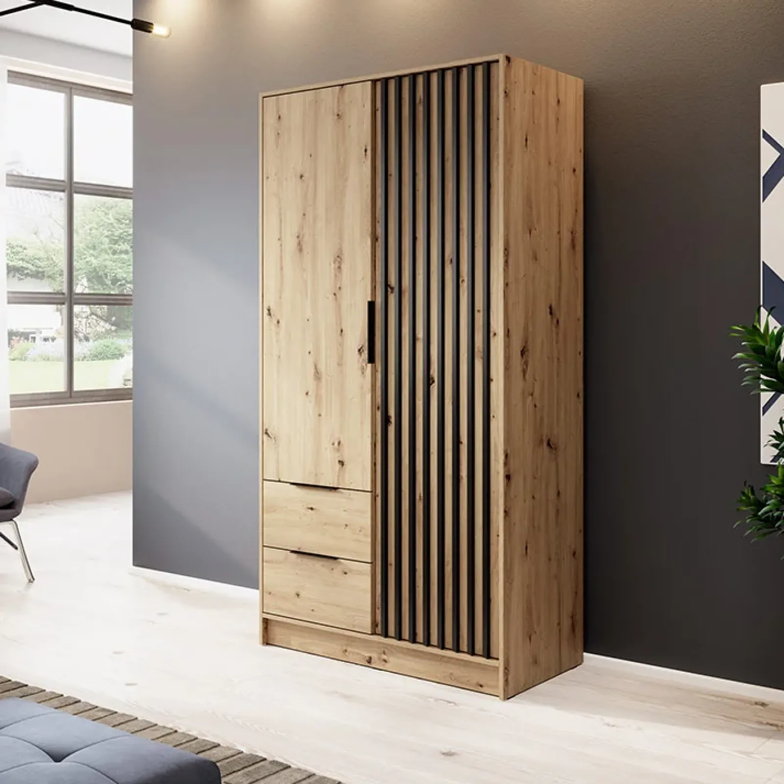 Armadio 2 ante con cassetti 105x200cm quercia nero Miller