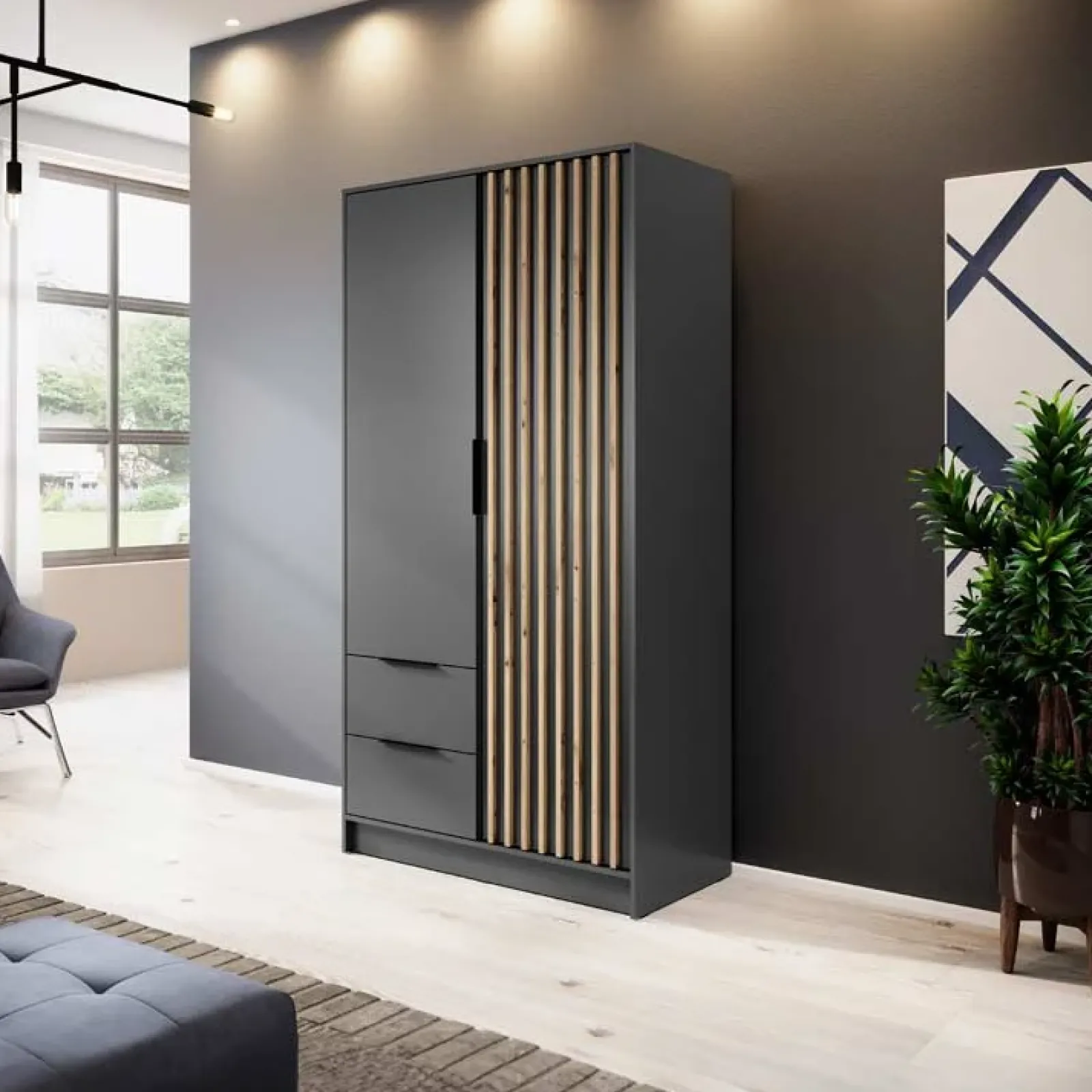 Armadio 2 ante con cassetti 105x200cm antracite quercia Miller