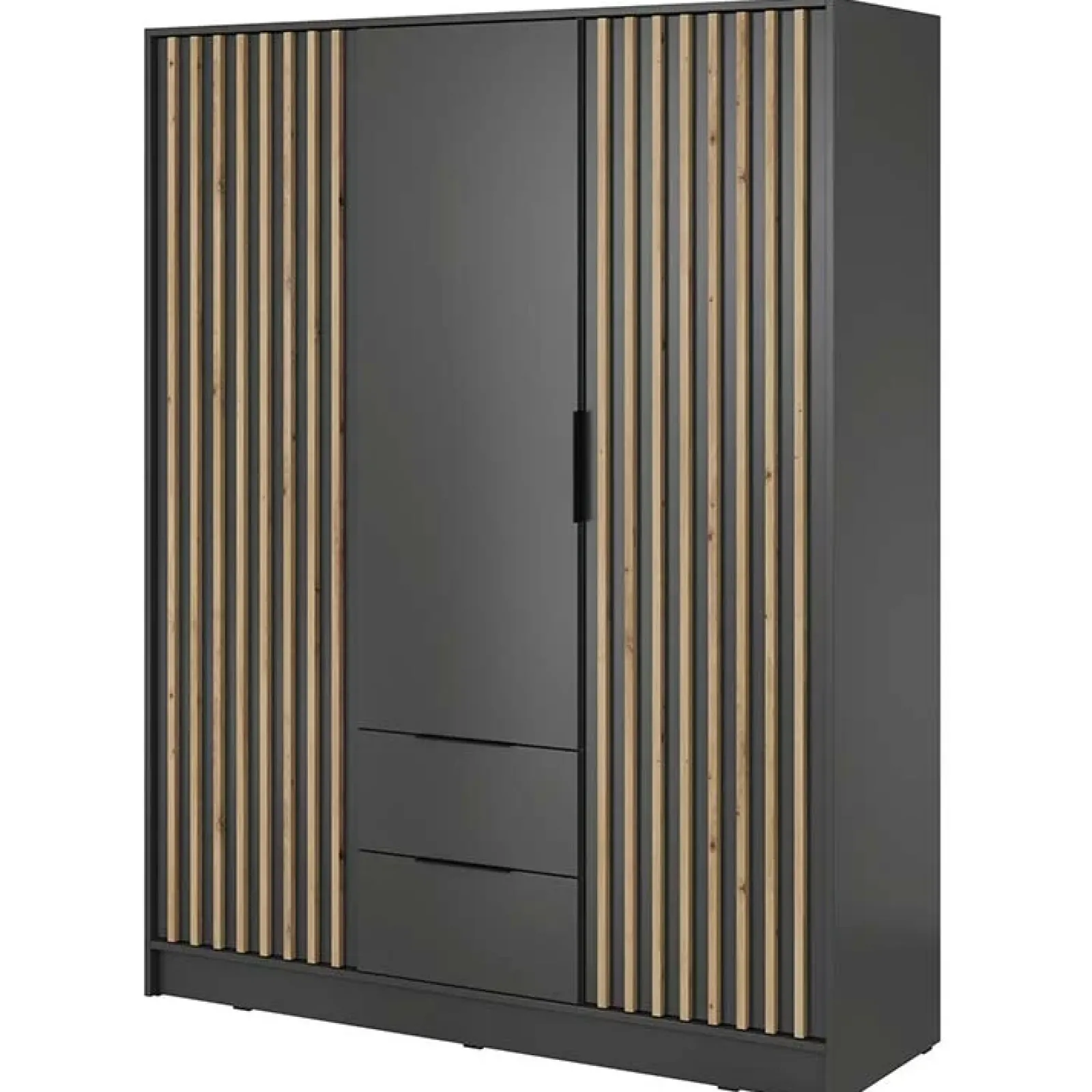 Garnero Arredamenti Armadio Ante Battenti|Guardaroba-Armadio 155x200h cm 3 ante con cassetti moderno quercia Miller Antracite