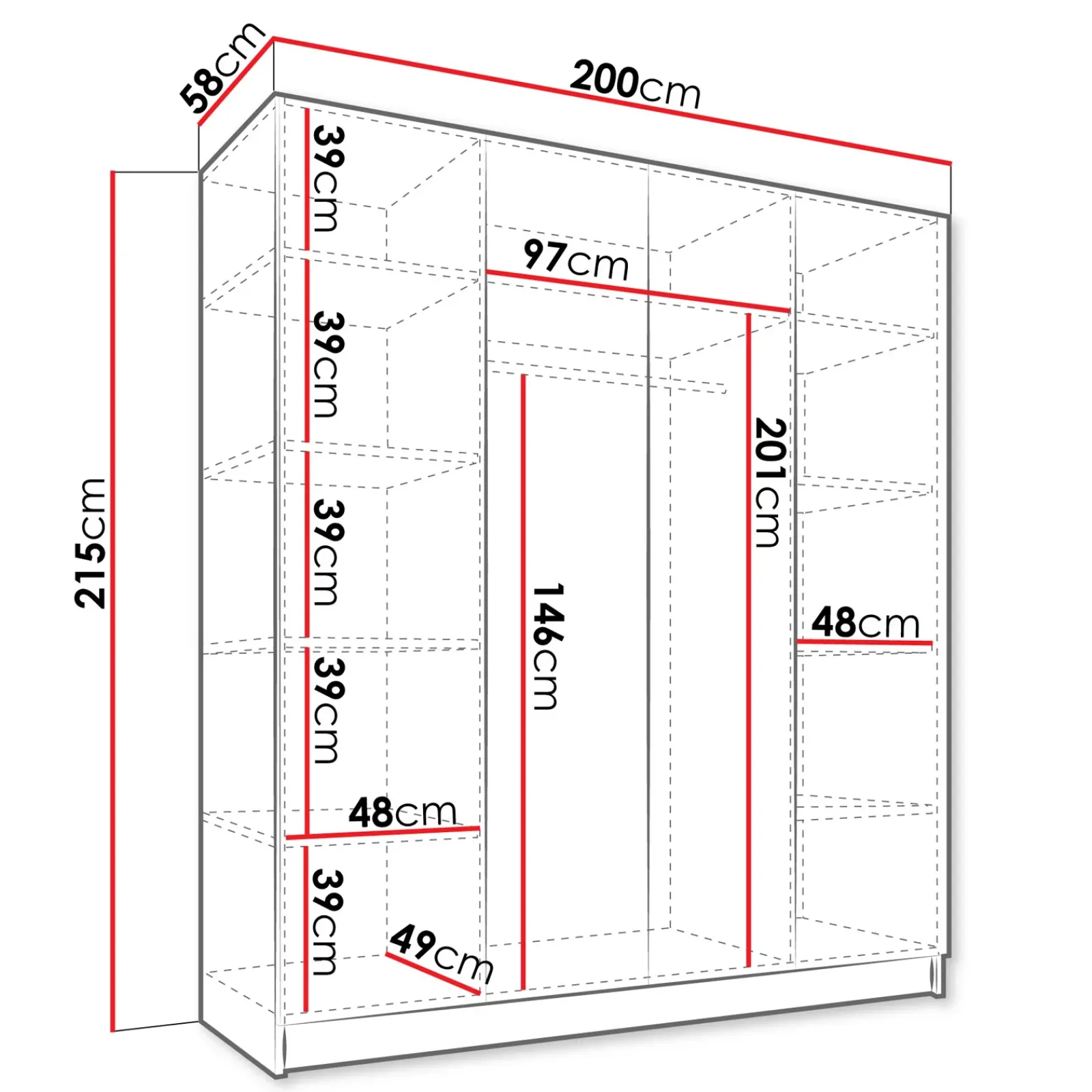 | Dimensioni | L.200 x H.215 x P.58 cm |