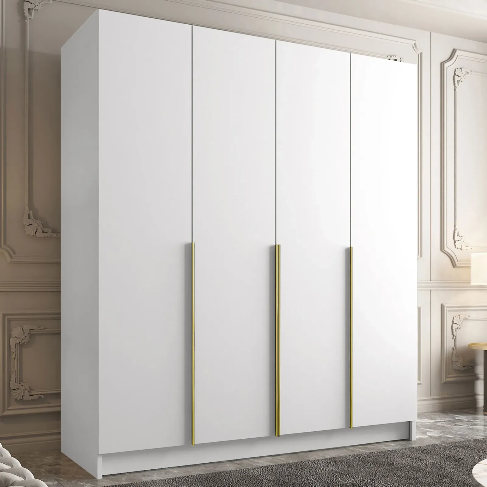 Garnero Arredamenti Armadio Ante Battenti|Guardaroba-Armadio 200x215h cm 4 ante moderno bianco oro Glammy 4 Bianco Opaco – Oro