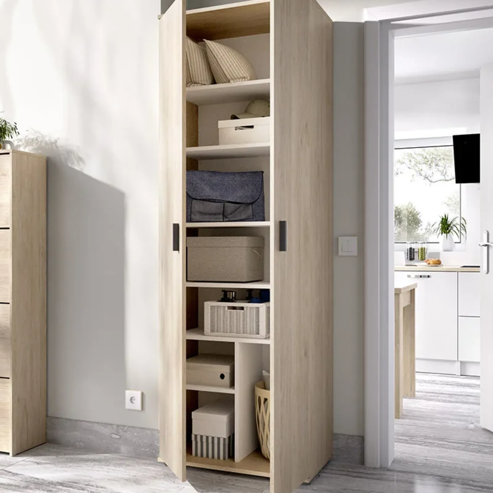 Armadio multiuso 61x190cm due ante con ripiani legno Ander. la sua linea moderna si adatta perfettamente ad ogni ambiente della tua casa.