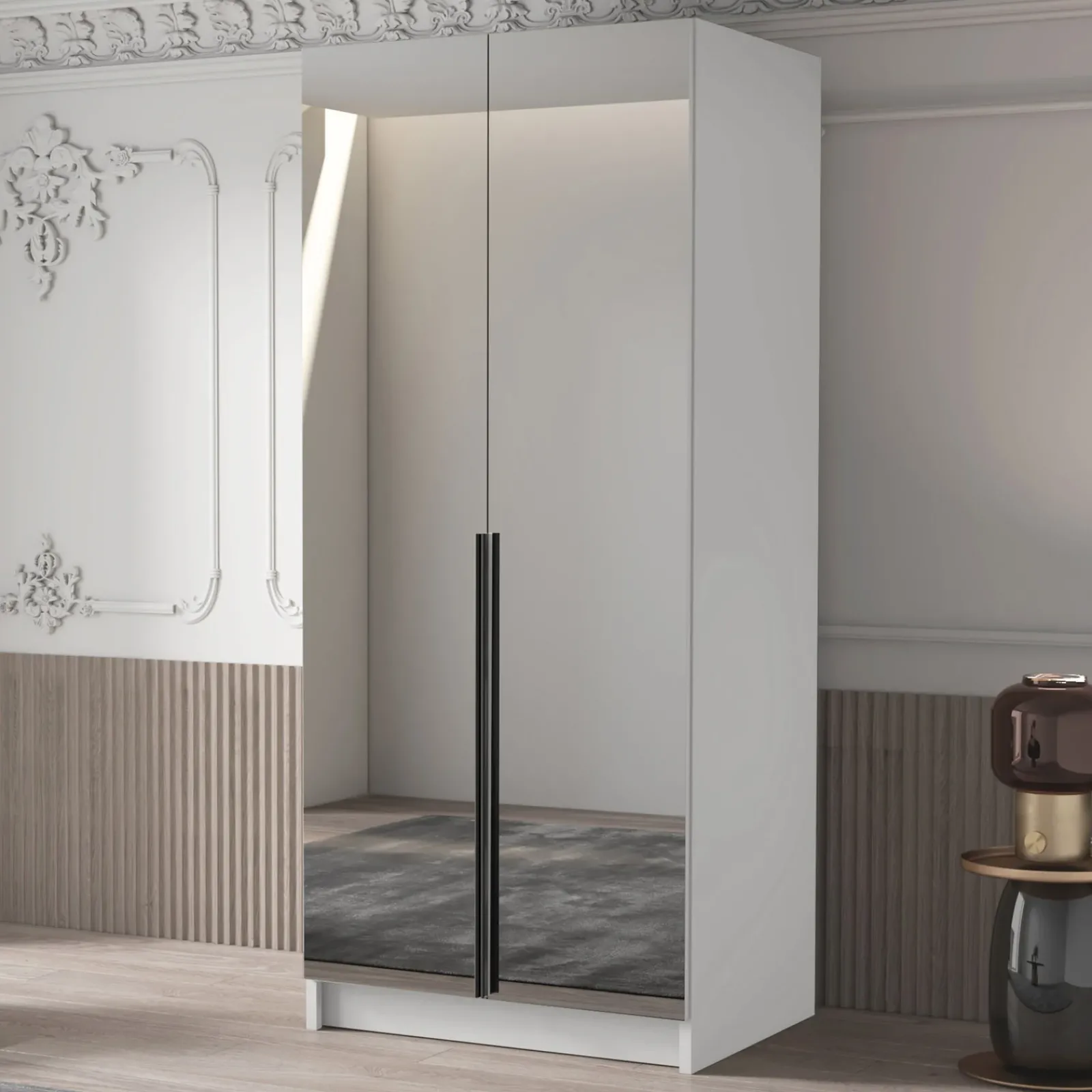 Armadio camera da letto 100x215cm 2 ante 2 specchi bianco nero Glammy 2