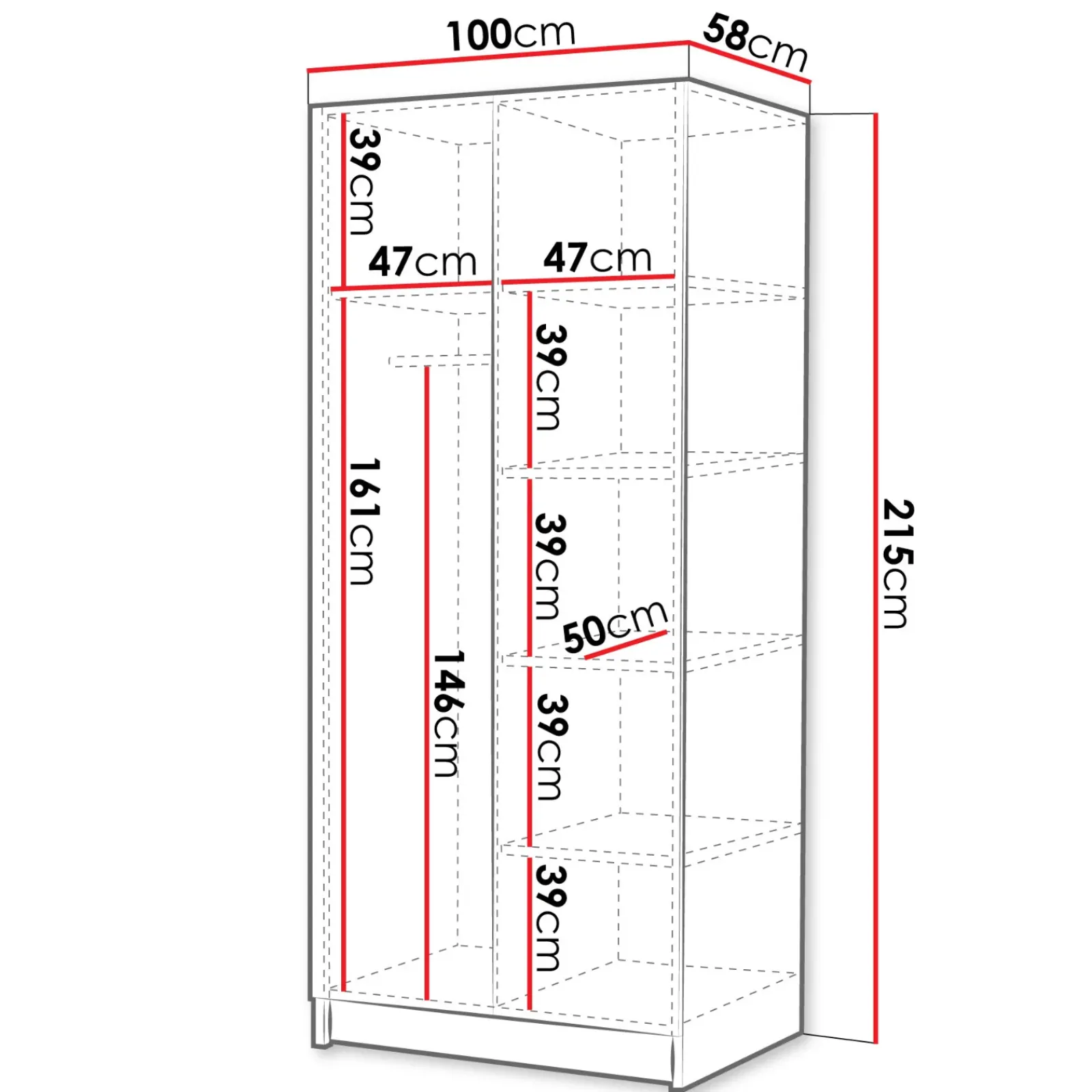 | Dimensioni | L.100 x H.215 x P.58 cm |