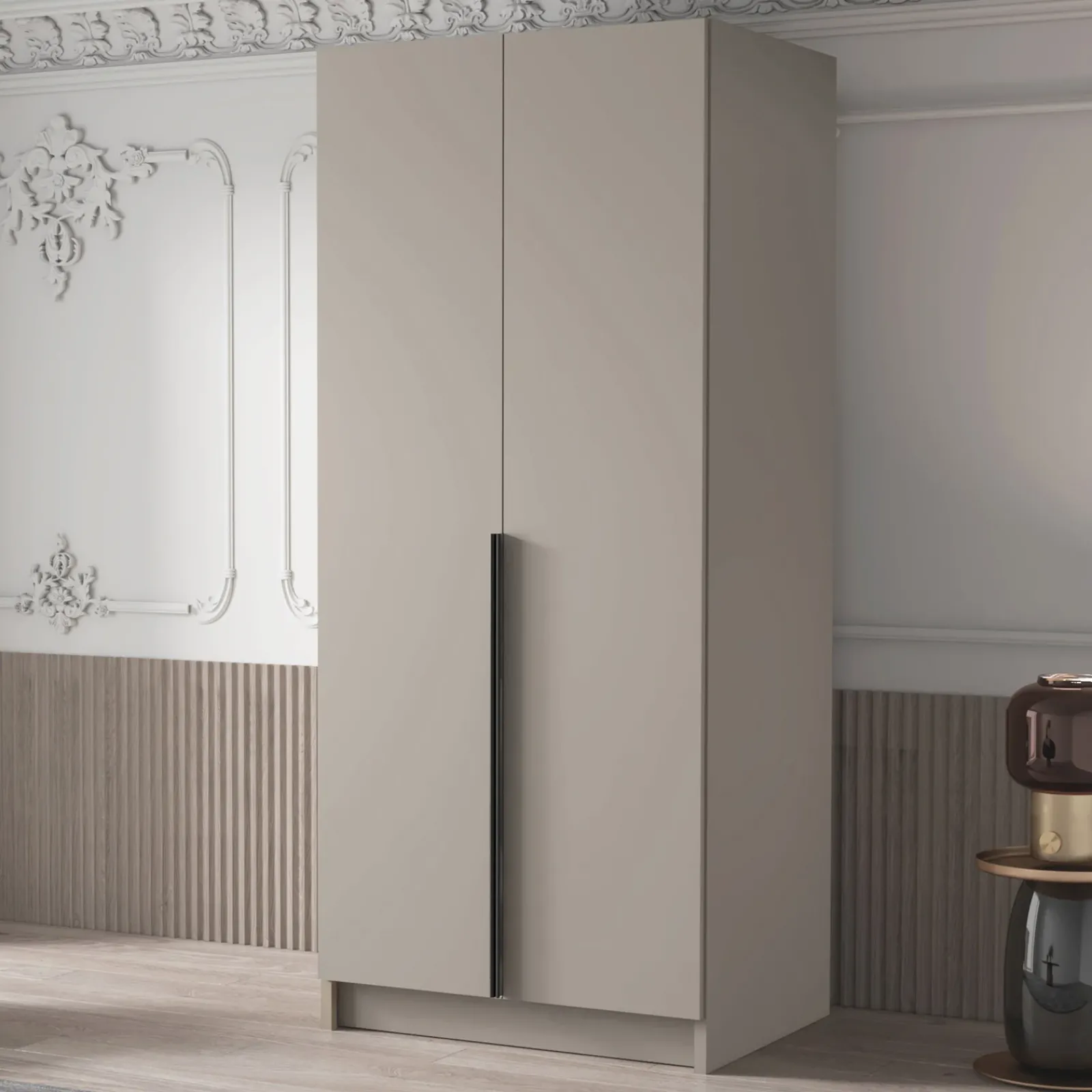 Armadio camera da letto 100x215cm 2 ante beige nero Glammy 2