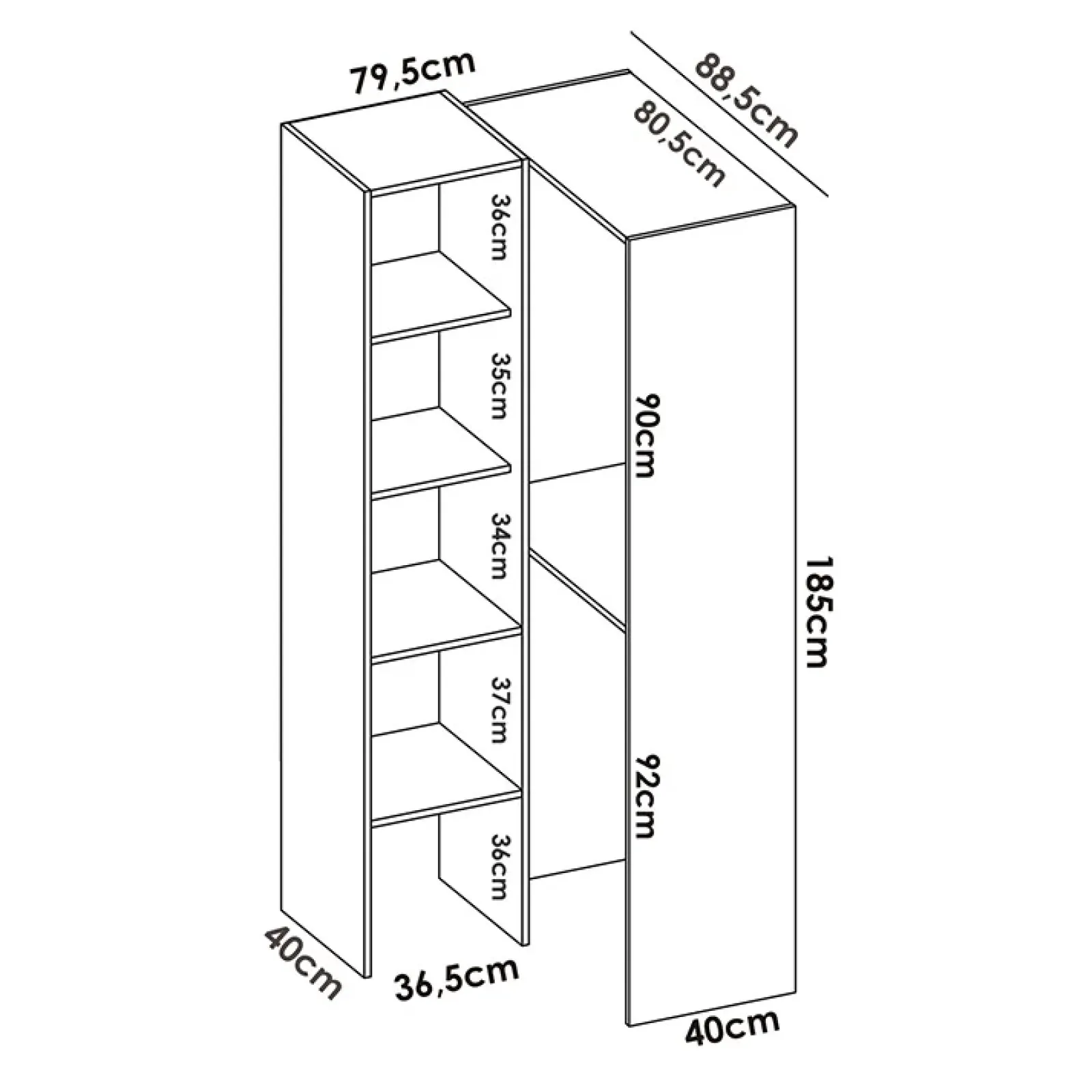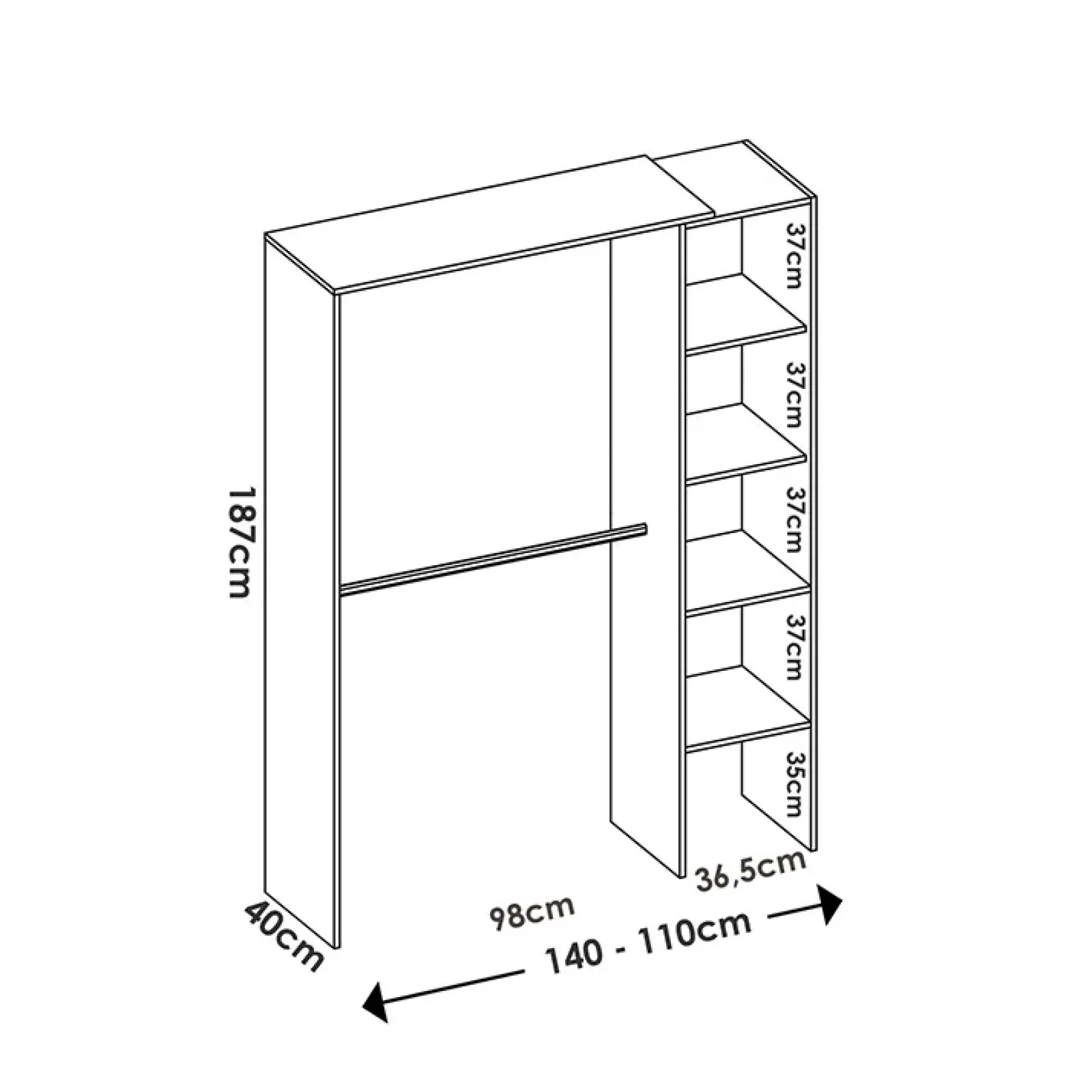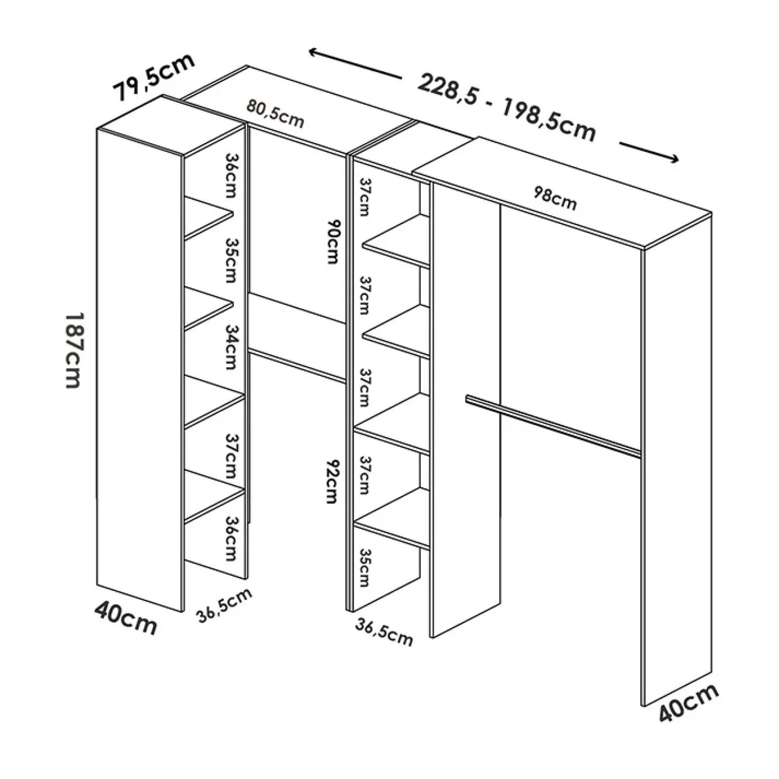 Cabina armadio angolare 187x228cm 4 scomparti bianco Rincon