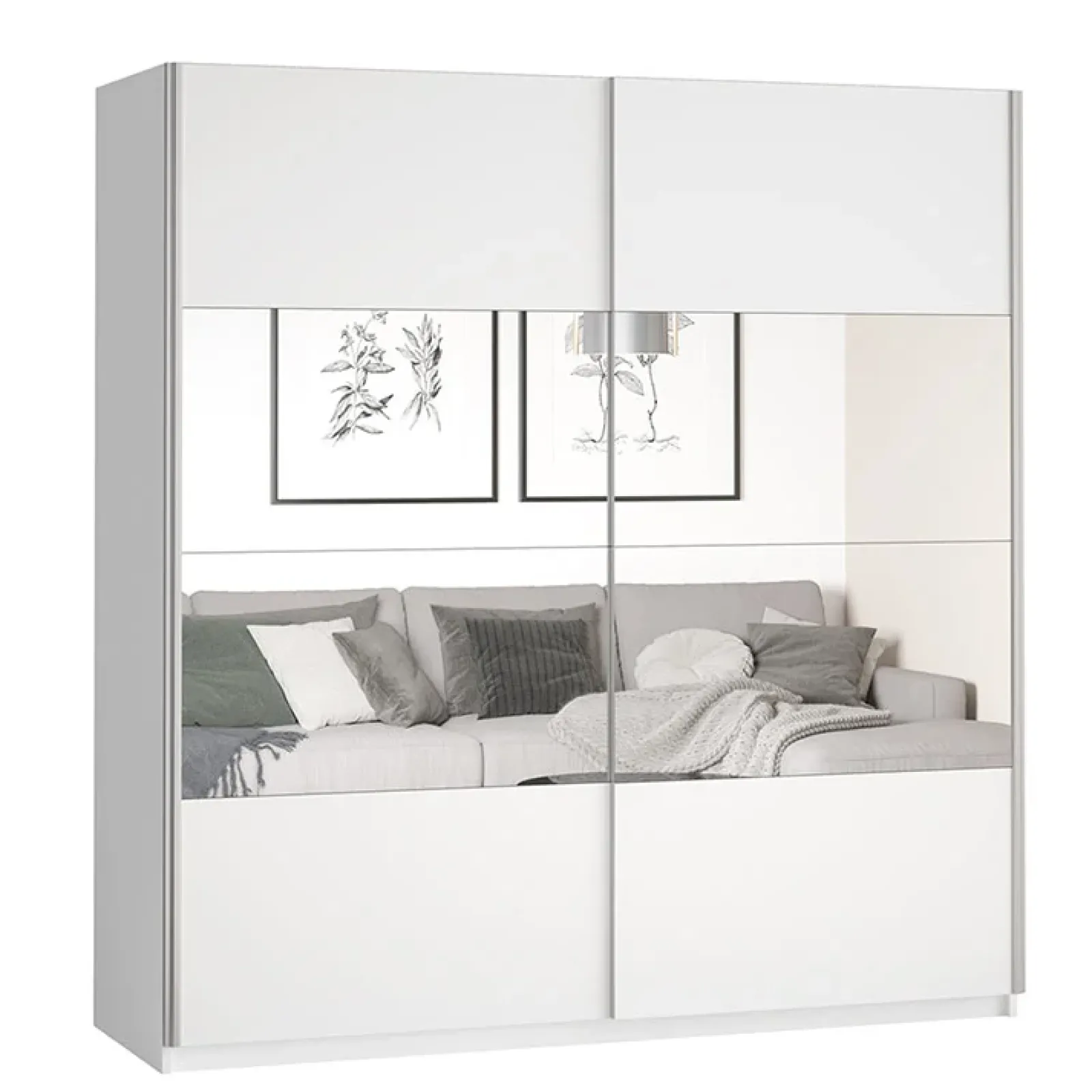 -4 inserti a specchio sulle ante con due possibilità di posizionamento