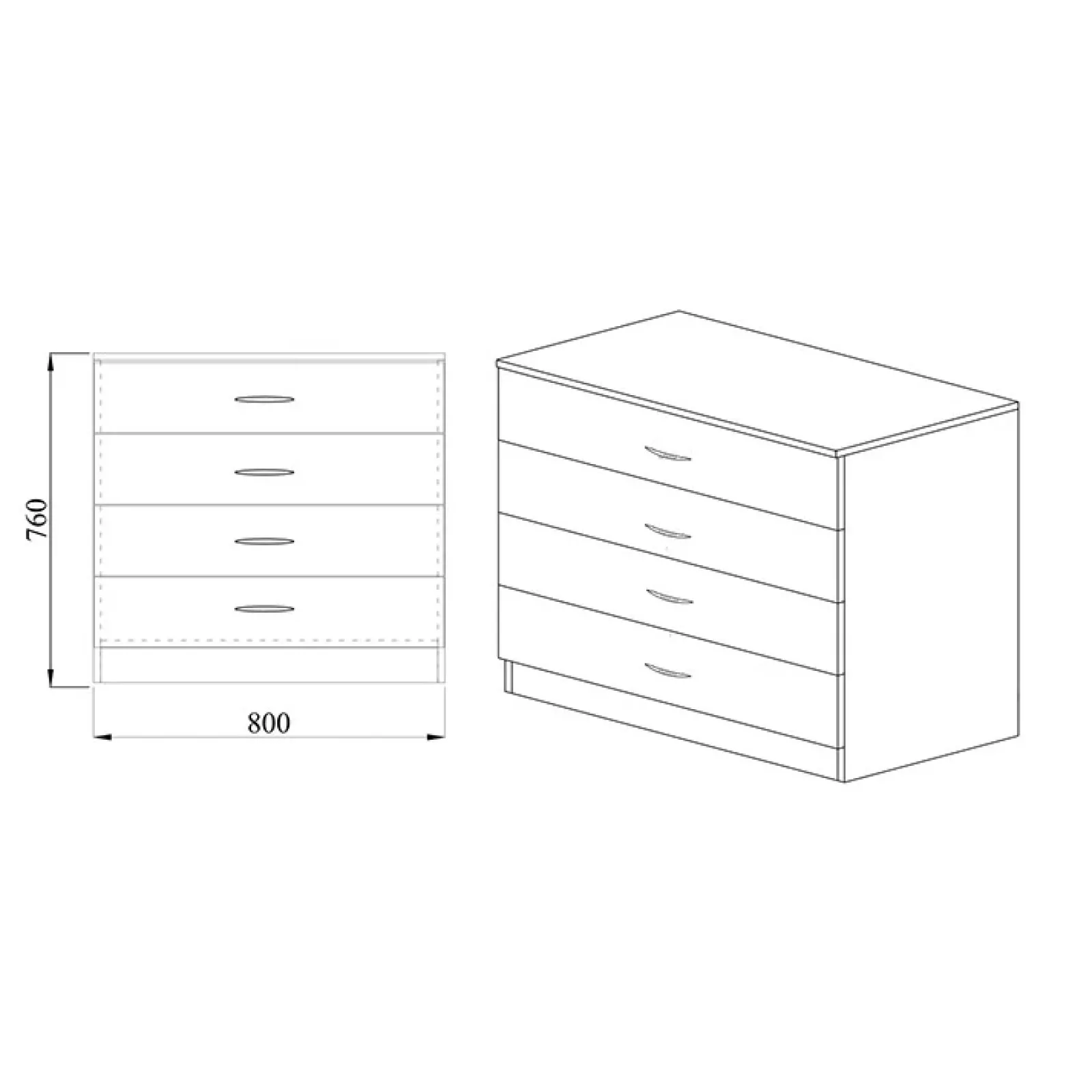 - Dimensioni comò: L.80 x P.43,5 x H.76 cm
