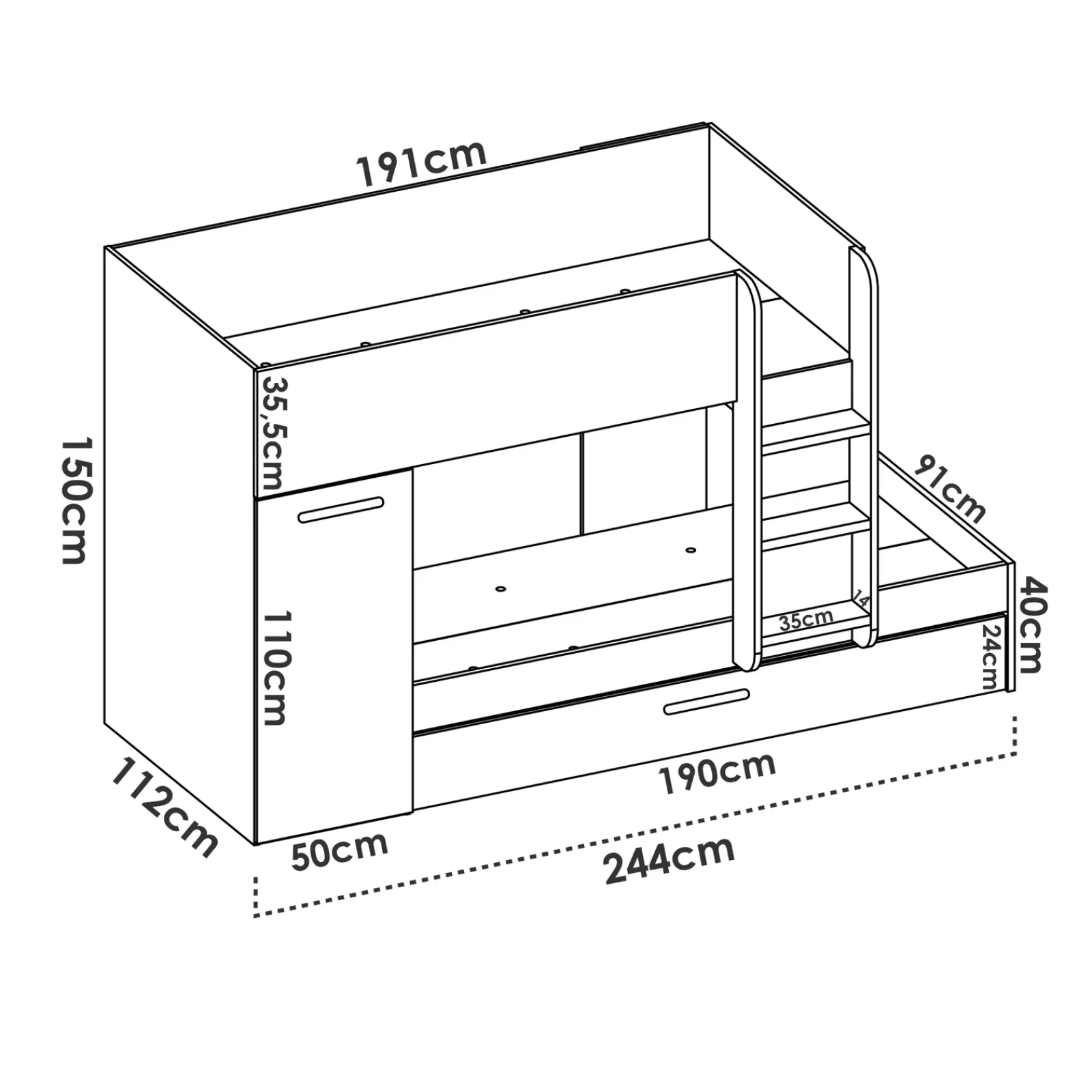 - Altezza massima materasso letto estraibile: 18 cm