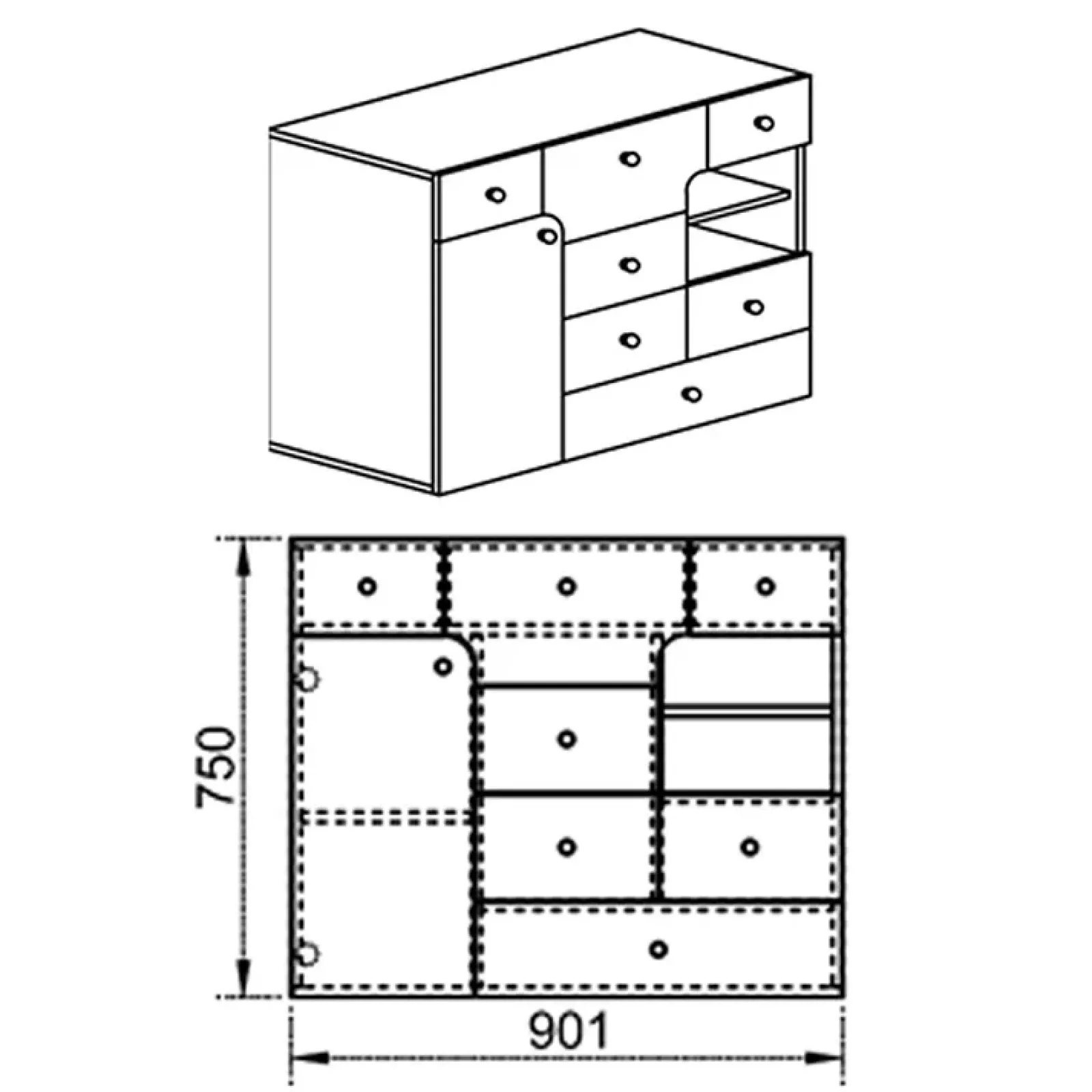 - Dimensioni comò: L.90,1 x H.75 x P.42 cm
