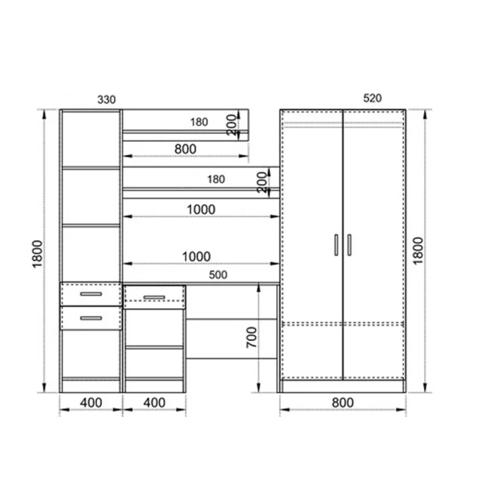 - dimensioni armadio: L.80 x P.52 x H.180 cm