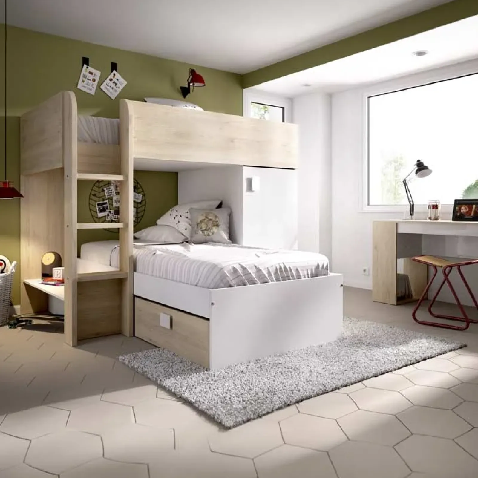 Cameretta bambini con soppalco reversibile rovere bianco Sole
