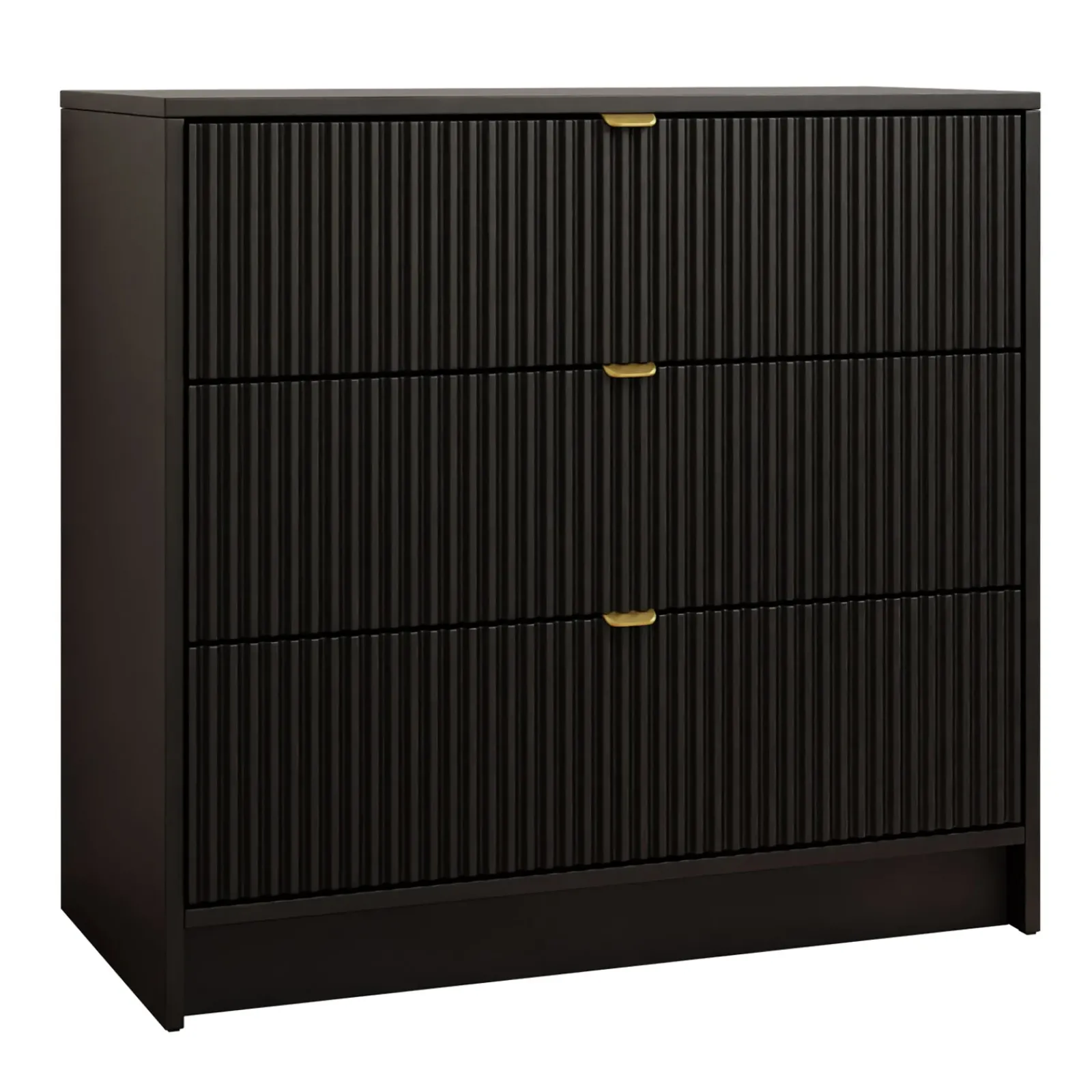 La cassettiera Athena in nero cannettato è un’interpretazione sofisticata e moderna del design minimalista. La sua finitura nera opaca, con la texture cannettata, regala un aspetto elegante e contemporaneo, capace di dare carattere a qualsiasi ambiente. La profondità del nero aggiunge una sensazione di classe e raffinatezza, perfetta per chi cerca un mobile che unisca stile e praticità con discrezione. Dotata di tre cassetti ampi e funzionali, Athena offre una soluzione di contenimento perfetta per riporre abiti, accessori o oggetti vari, mantenendo l’ordine senza rinunciare all’estetica. Le maniglie color oro si fanno notare per la loro eleganza, creando un contrasto di classe con la superficie nera e aggiungendo un tocco di lusso che cattura l’attenzione senza essere esagerato. La cassettiera Athena è ideale per chi cerca un mobile che non solo sia funzionale ma che arricchisca ogni spazio con un design raffinato e contemporaneo. Perfetta per qualsiasi ambiente, dalla camera da letto al soggiorno, diventa un vero e proprio pezzo d’arredo che unisce bellezza, praticità e un tocco di lusso.