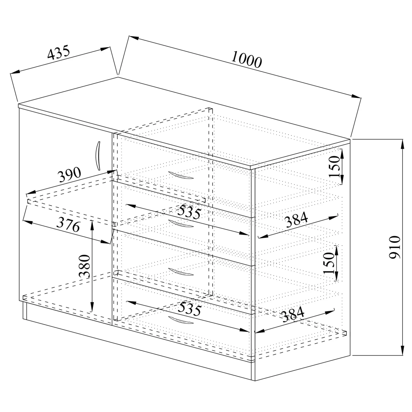 - Dimensioni totali: L.100 x P.43,5 x H.91 cm