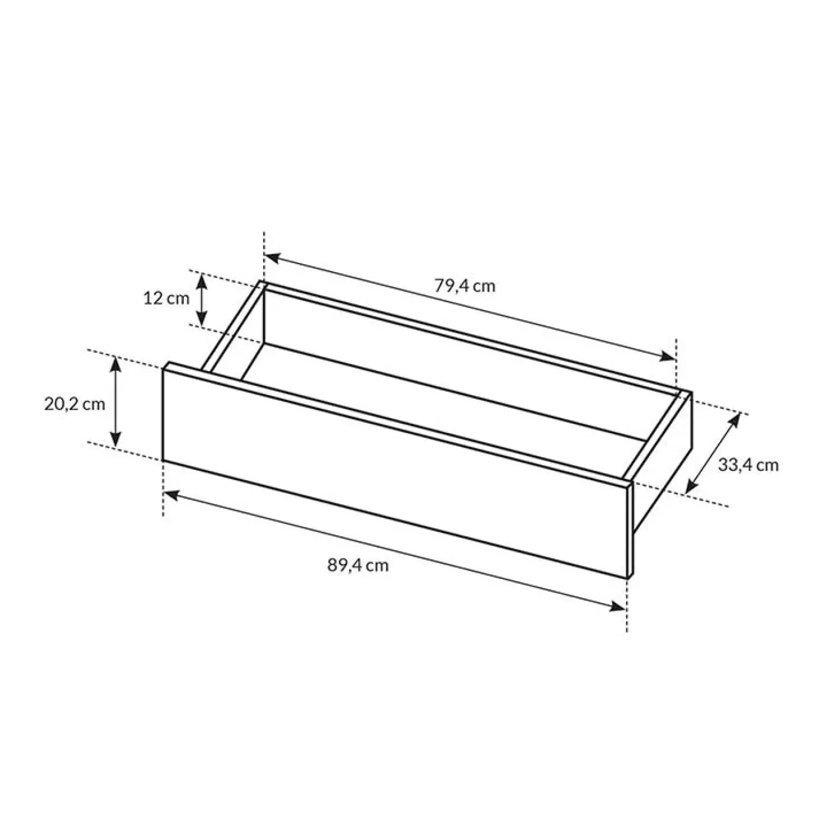 - dimensioni cassetto: L.89,4 x H.20,2 x P.33,4 cm
