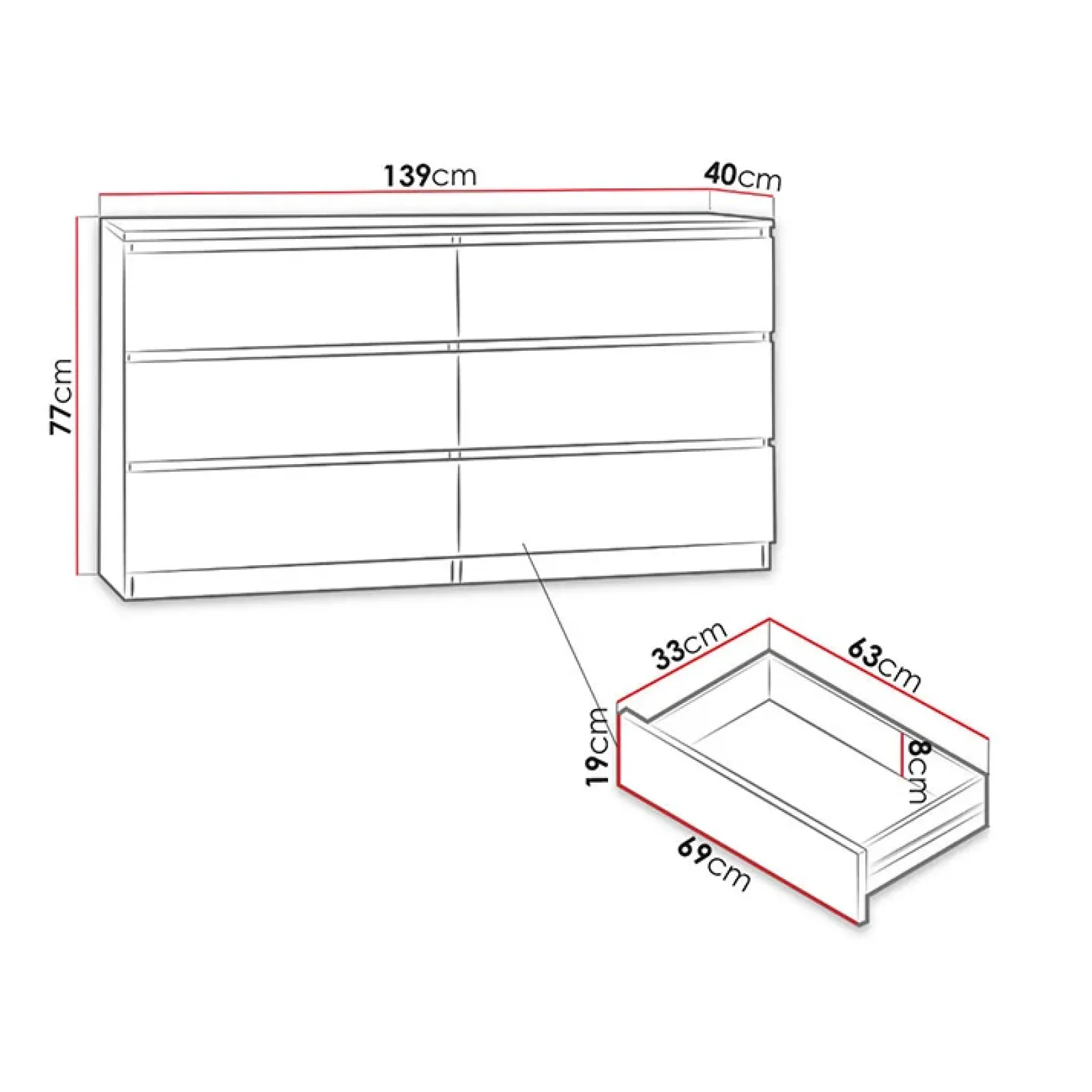 Cassettiera moderna 139x77cm 6 cassetti bianco Rotterdam, la sua grande capienza ti permetterà di ordinare tutta la tua biancheria .