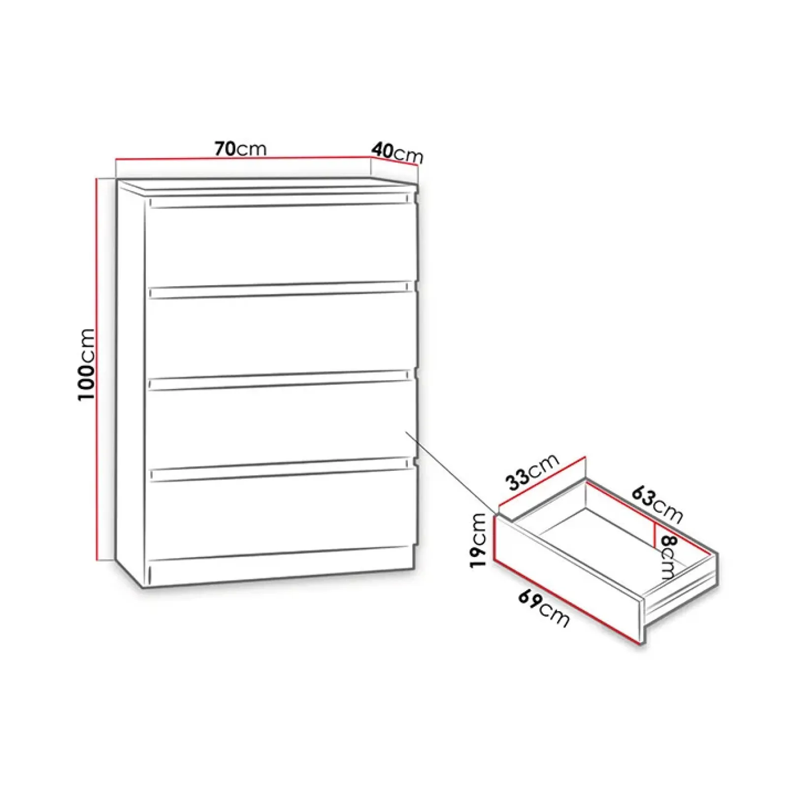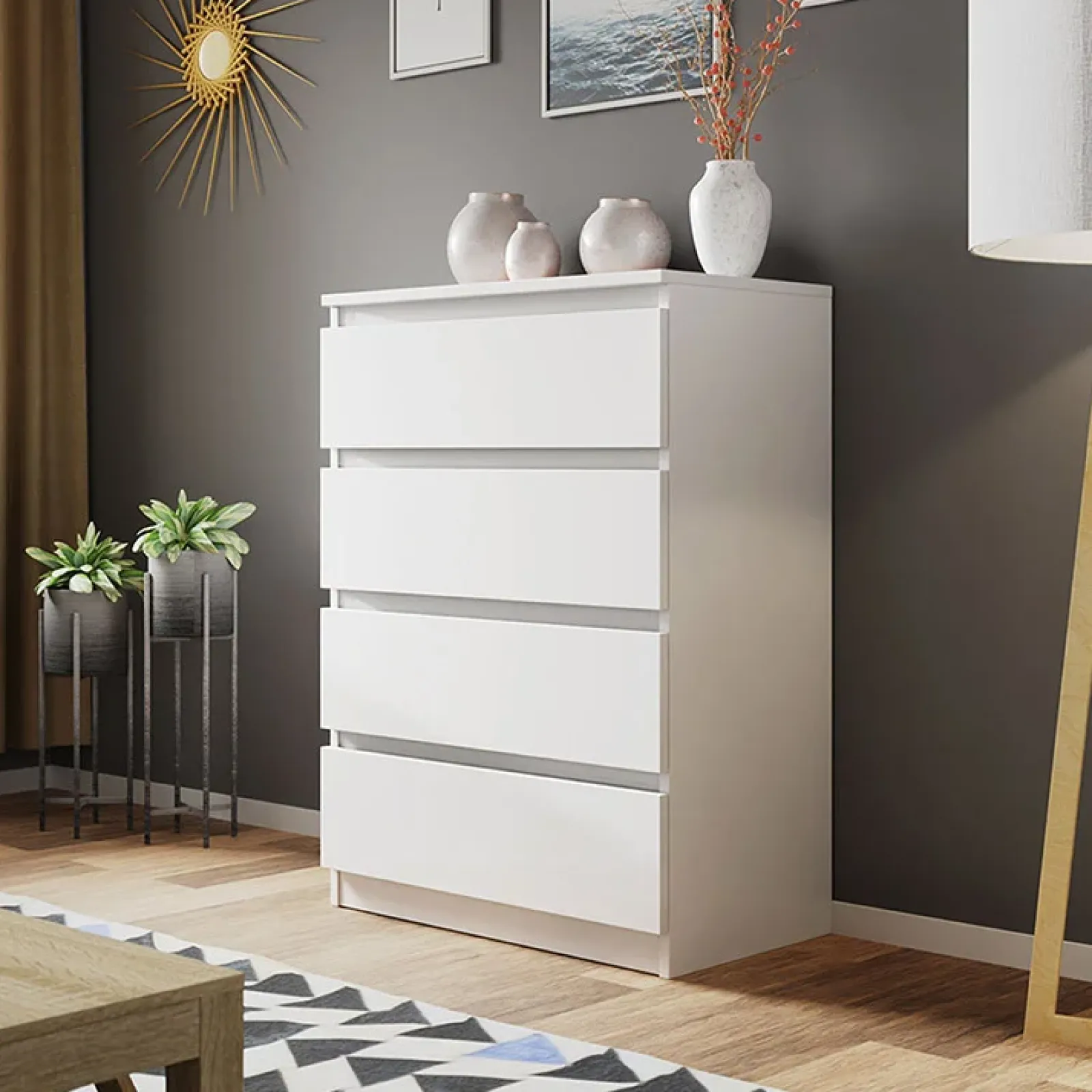 Cassettiera moderna 70x100cm 4 cassetti bianco Rotterdam, così versatile che potrai utilizzarla in tutta la casa.