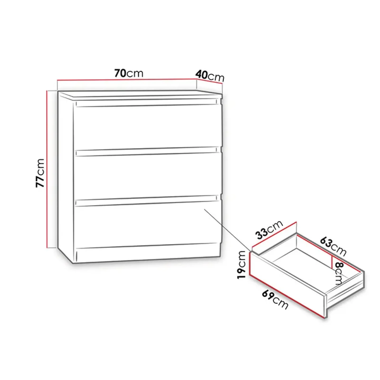 Cassettiera moderna 70x77cm 3 cassetti nero Rotterdam, renderà la tua camera attuale e giovane.