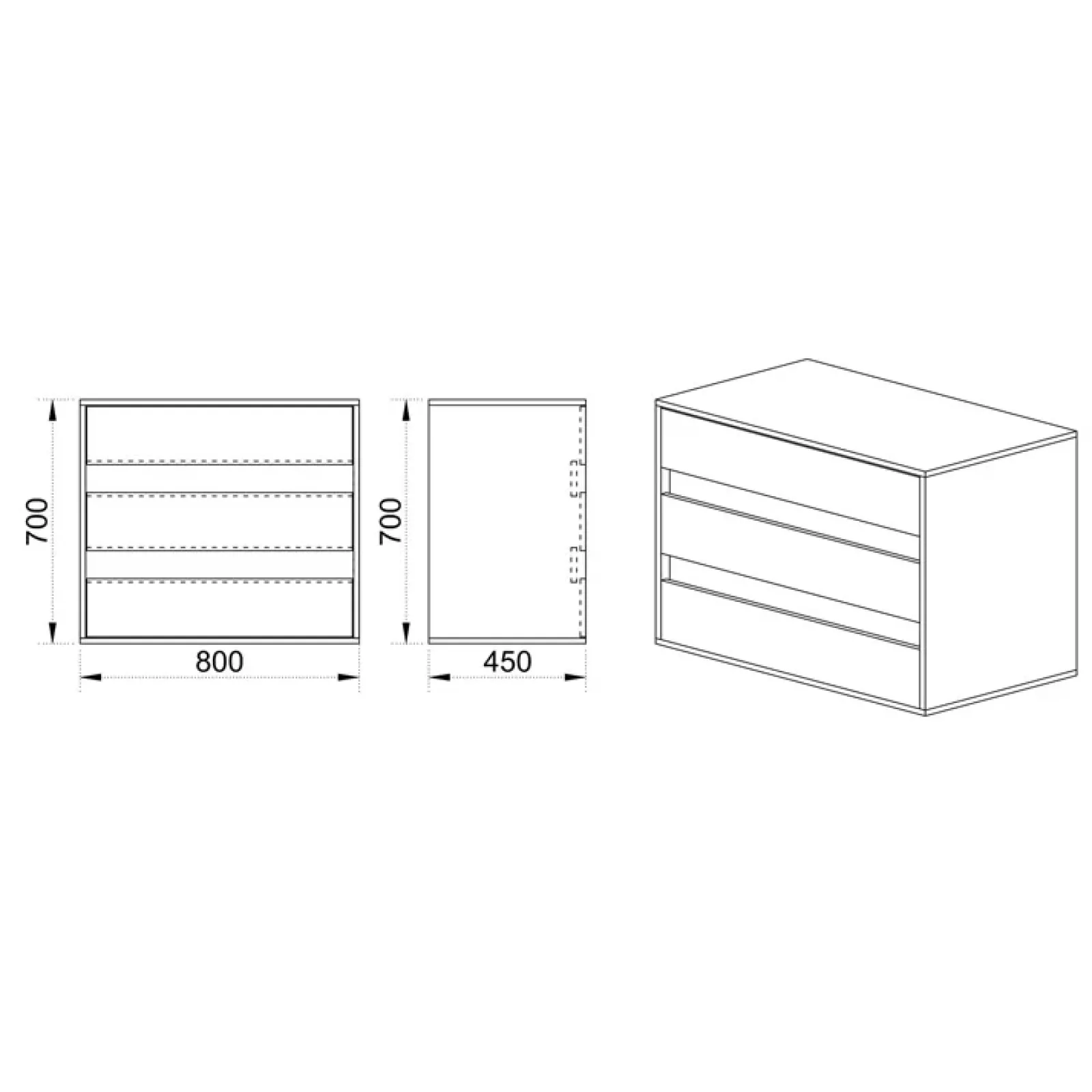 Cassettiera moderna 80x70cm rovere grigio Altea
