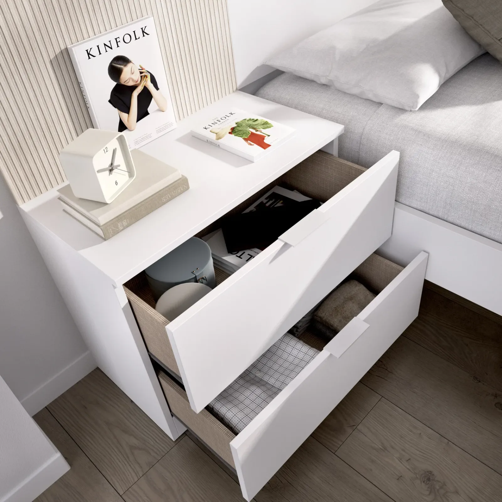Comodino Manuel 2 cassetti bianco: pratico e funzionale, è la soluzione perfetta per avere sempre tutto a portata di mano.