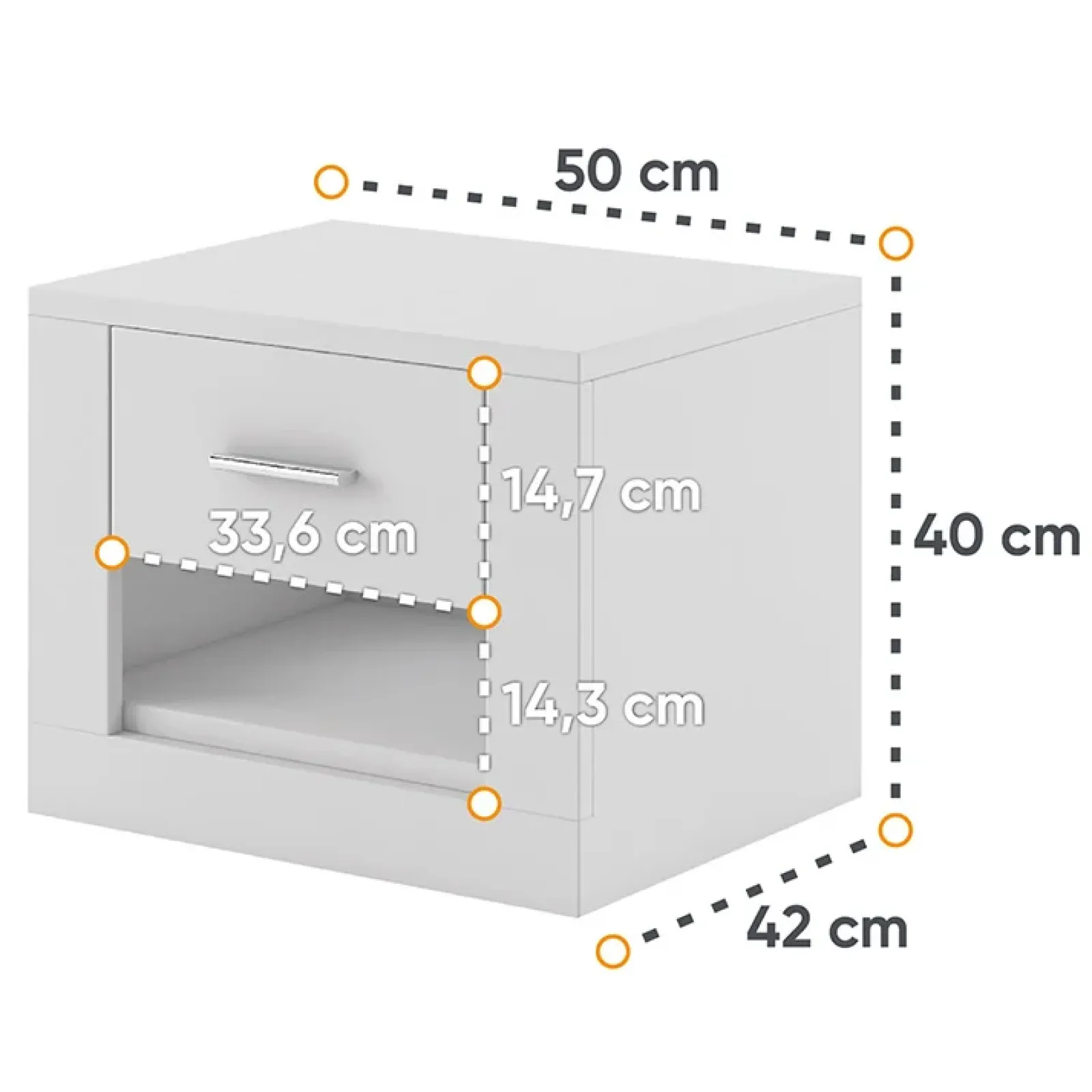 Be the first to review “Garnero Arredamenti Comodini|Comò-Comodino 50x40h cm 1 cassetto Ombra Bianco Opaco” Annulla risposta