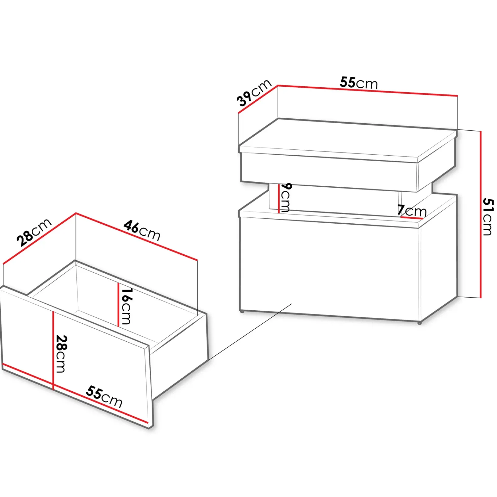 Comodino 55x51cm 1 cassetto con LED bianco Lumus