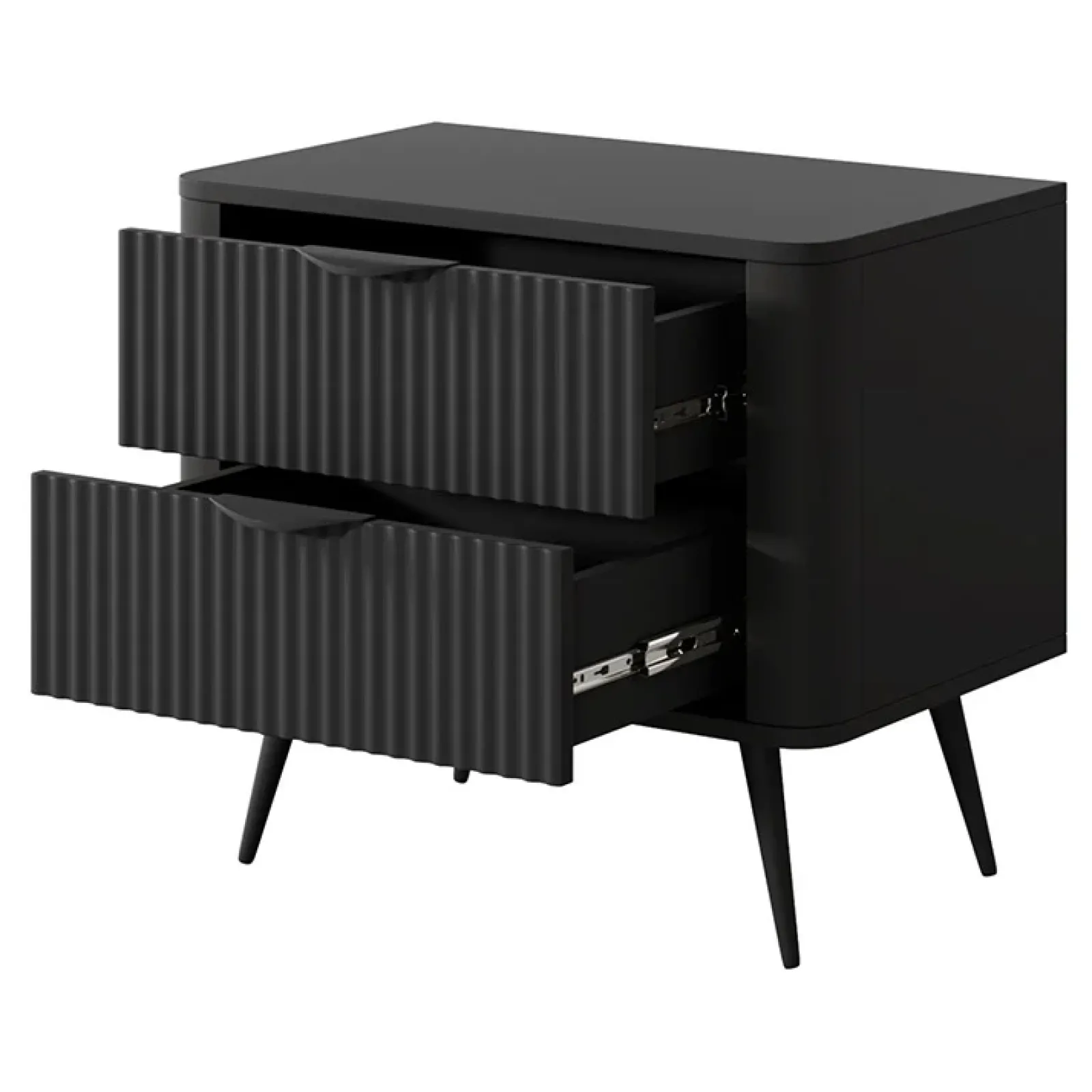 Comodino 63x55cm 2 cassetti nero opaco cannettato Ramis