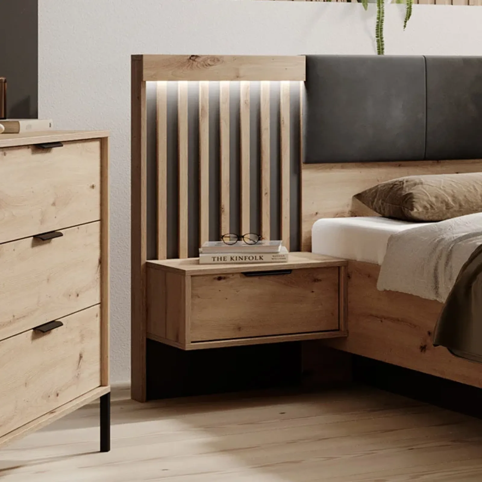 I suoi colori neutri, rovere e antracite, e le sue linee semplici, rendono il set comodini design perfetto per essere collocato in molteplici idee di stile e design. Anche la sua grafica frontale a strisce rende accattivante il suo aspetto. Scopri gli altri elementi della collezione Rubik.