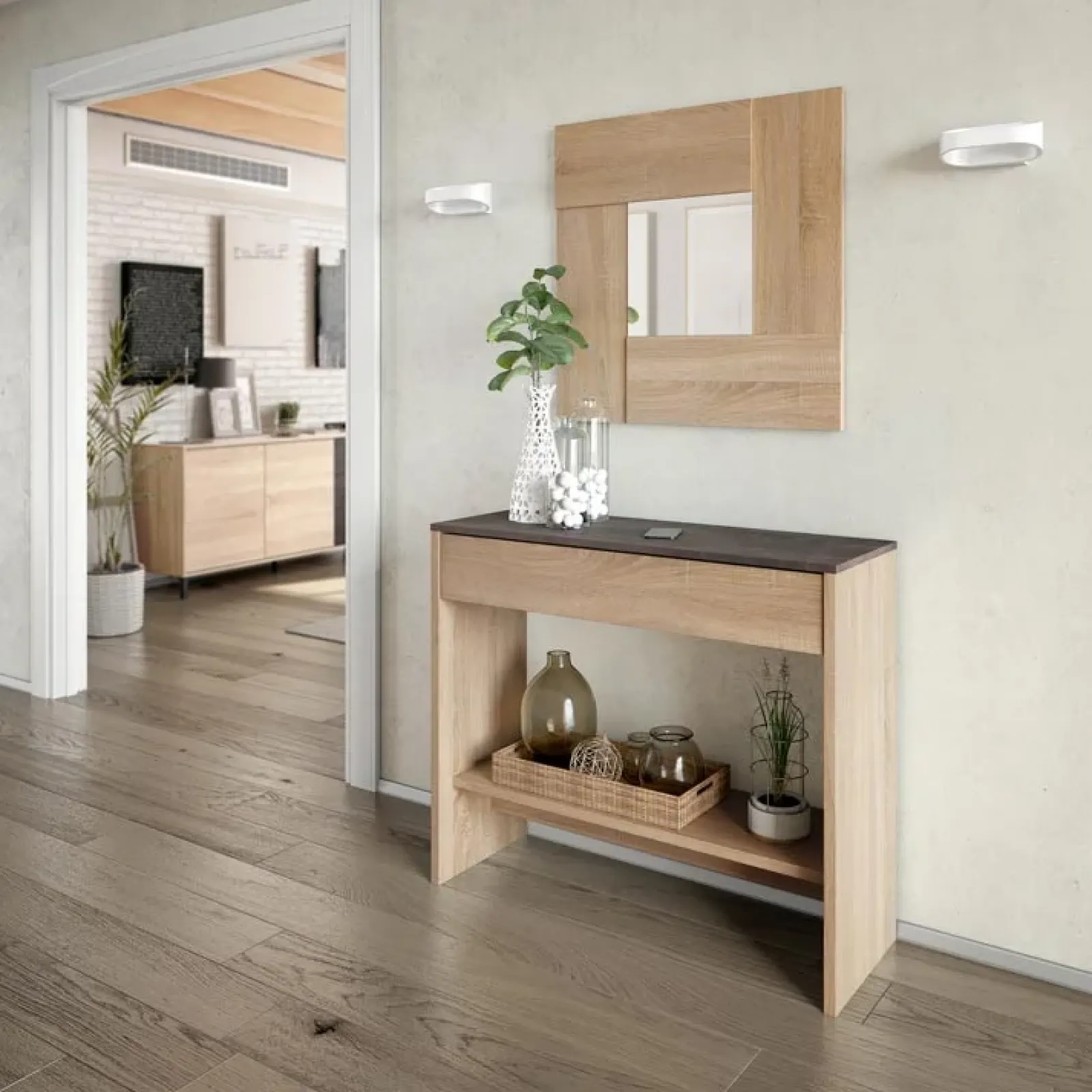 Consolle ingresso salvaspazio con specchio e cassetto rovere Nelson: una soluzione elegante e compatta, perfetta per accogliere al meglio le persone a casa tua!
