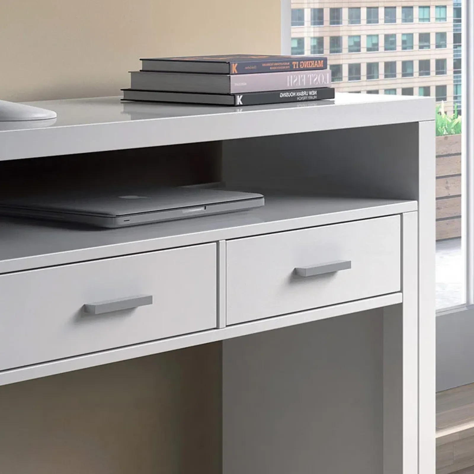 Garnero Arredamenti Consolle Fissa|Consolle Fissa-Scrivania consolle ingresso moderna 99x87cm bianco opaco Anastasia