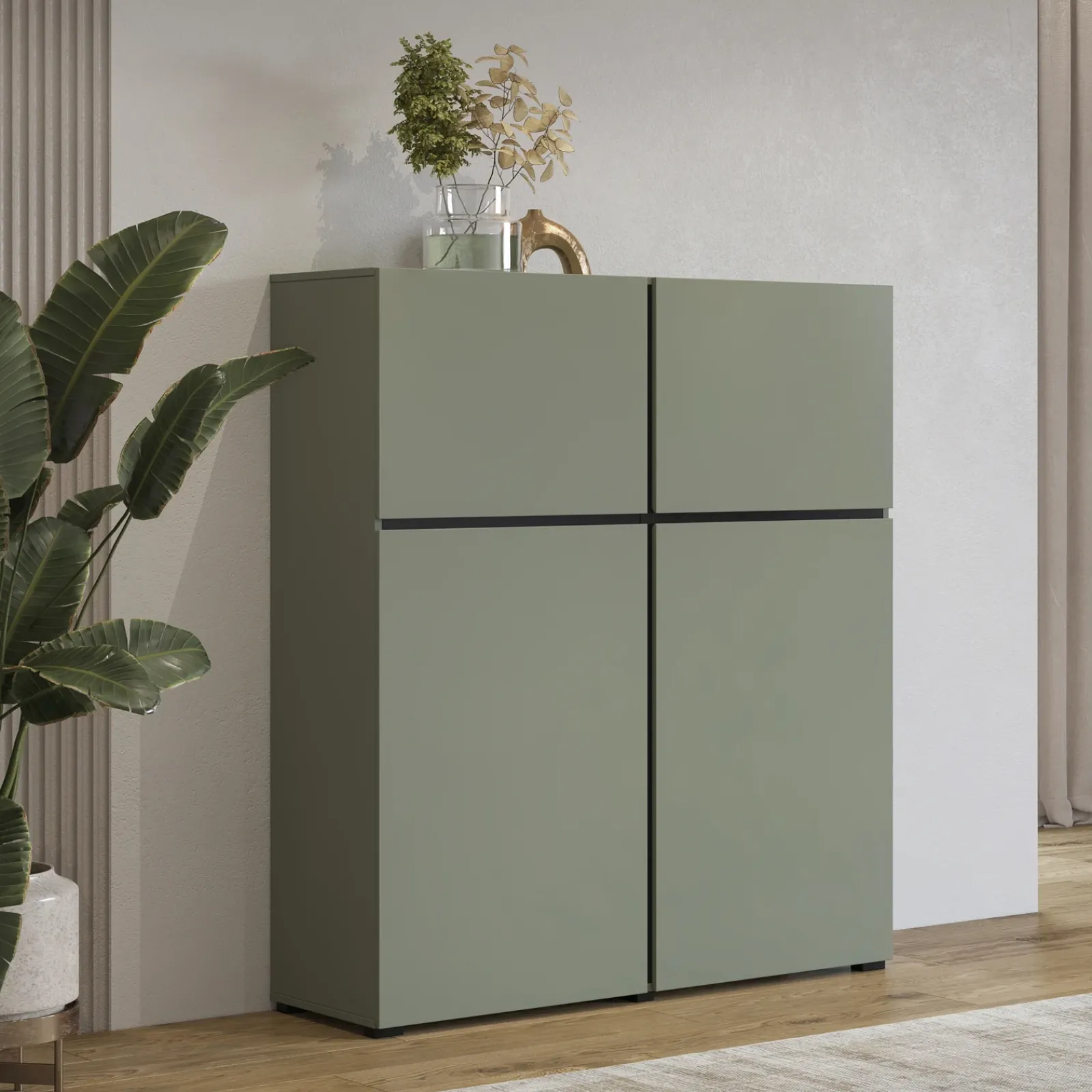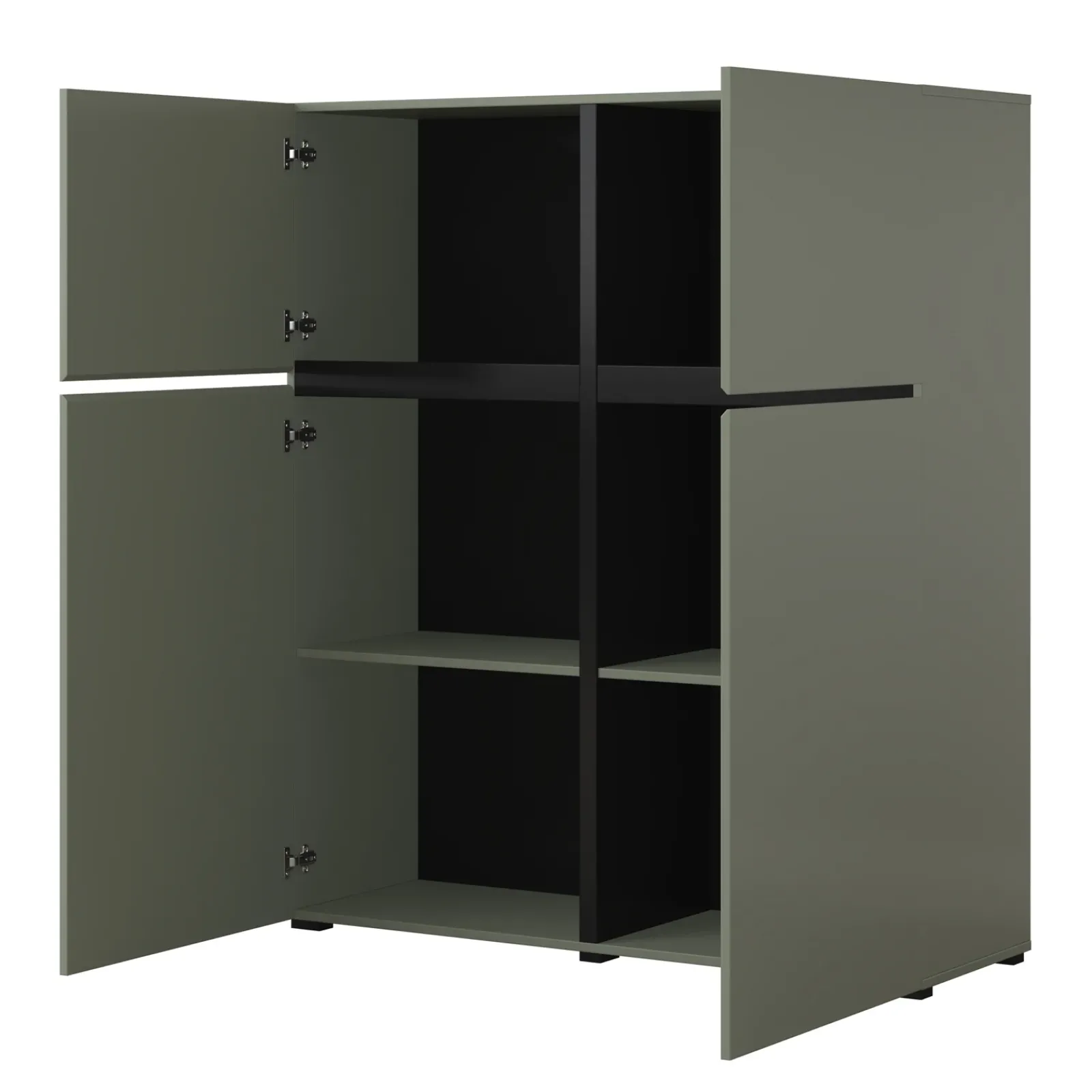 Garnero Arredamenti Credenza Alta-Credenza alta 120x140h cm 4 ante moderna verde nero Lolla Verde Salvia