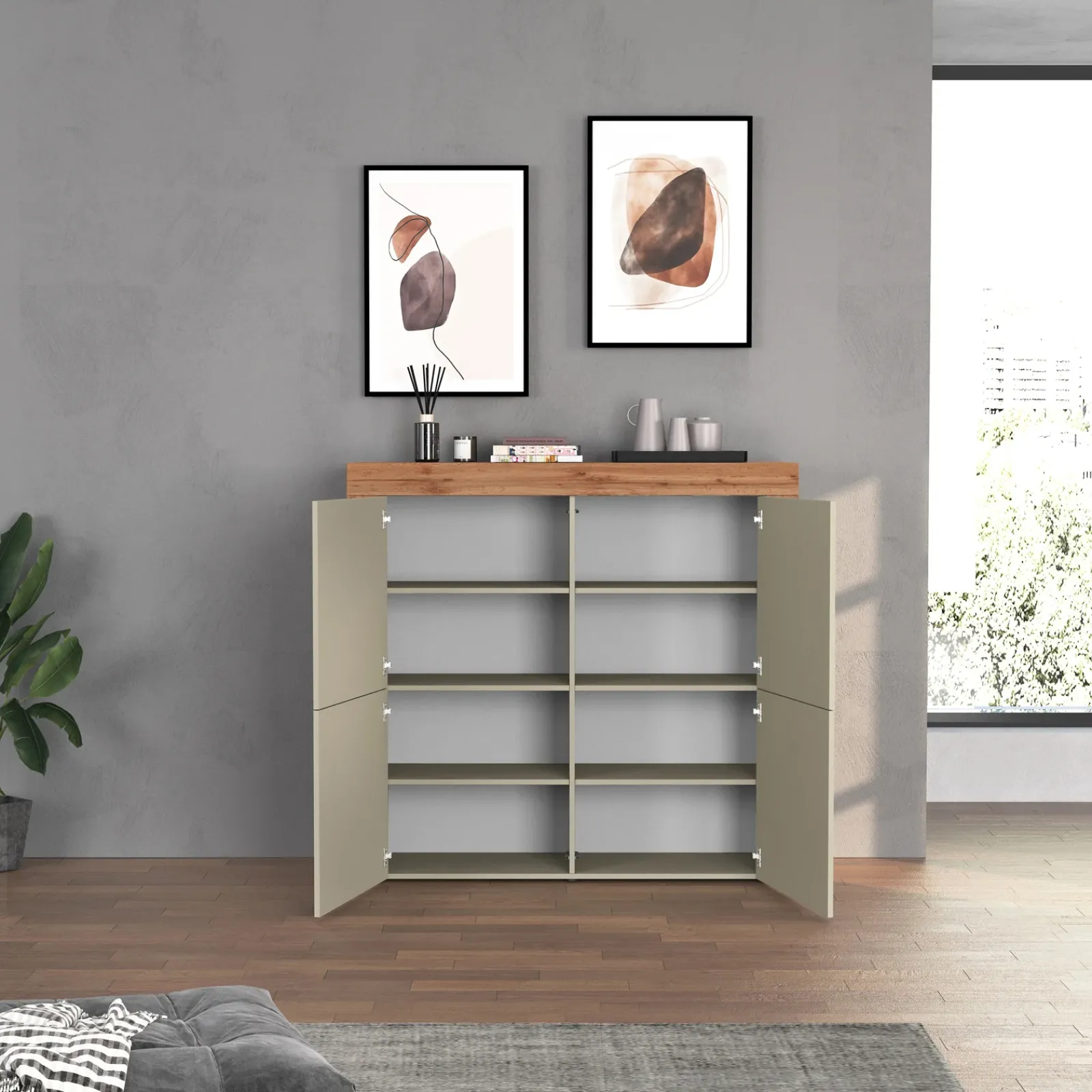 Garnero Arredamenti Credenza Alta|Credenze Moderne-Madia alta moderna 140x130h cm tortora rovere Block Tortora – Rovere