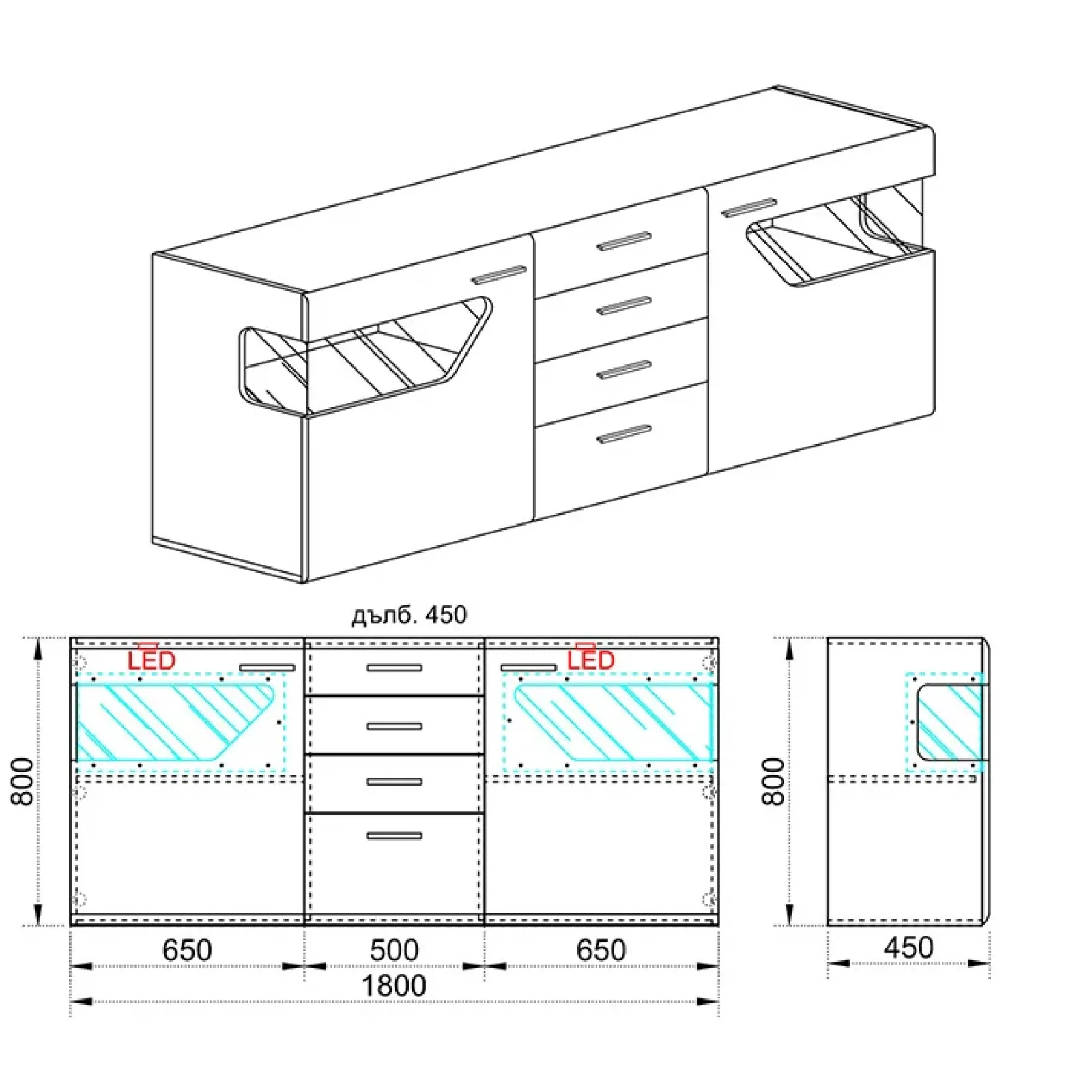 - Dimensioni: L.180 x H.81 x P.45,5 cm