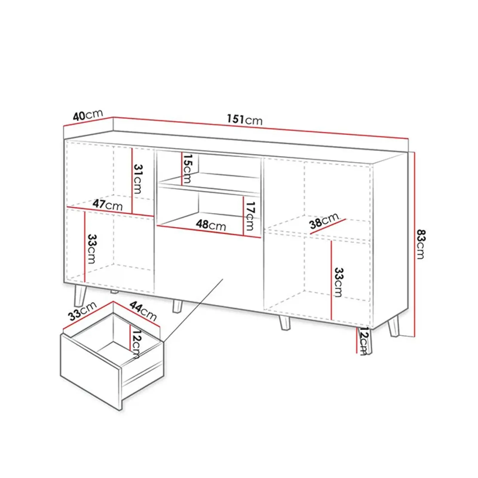 | Dimensioni | L.151x H.83 x P.40 cm |