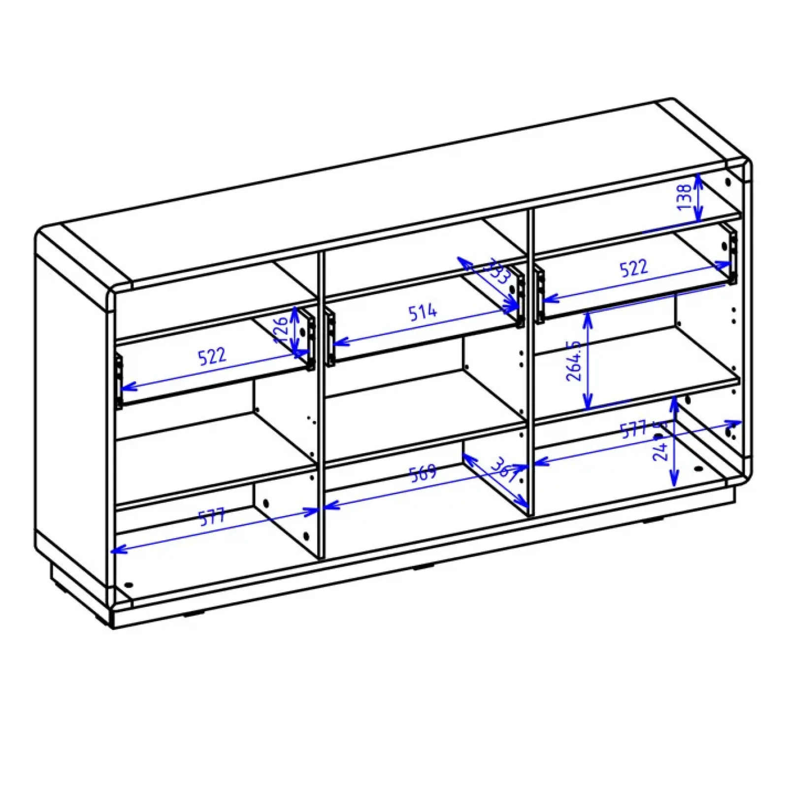Pratica e confortevole, la credenza moderna Esmond è dotata di: tre ante battenti con all’interno dei rapini, tre cassetti e tre vano a giorno; ottimi per mettere in mostra oggetti da collezione, valorizzando al meglio ogni spazio della zona giorno.