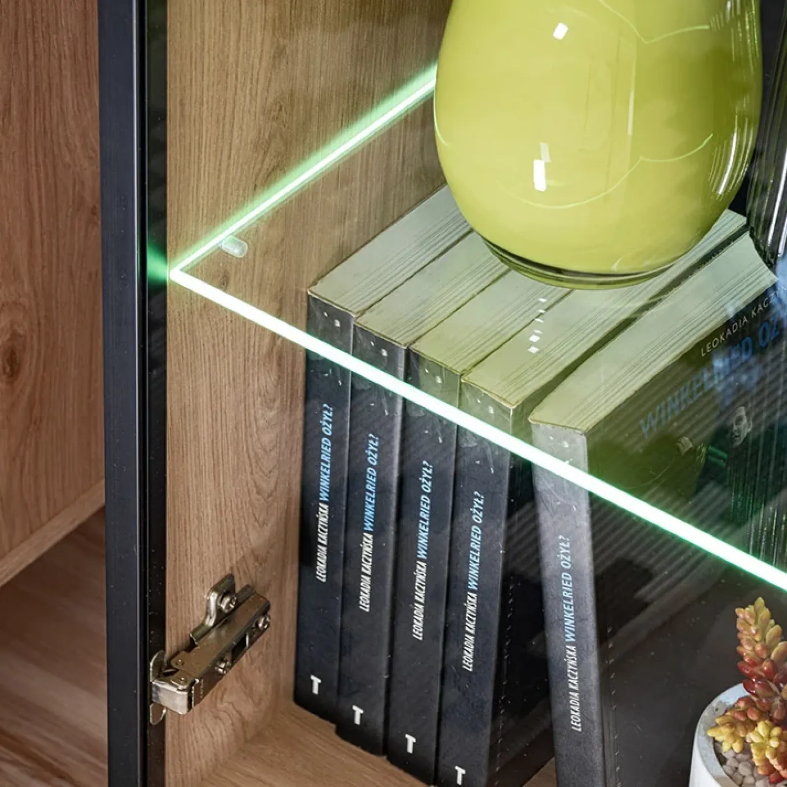 Le caratteristiche principali di questa linea sono i frontali decorati ed il contrasto tra la rusticità del legno e la modernità del vetro.