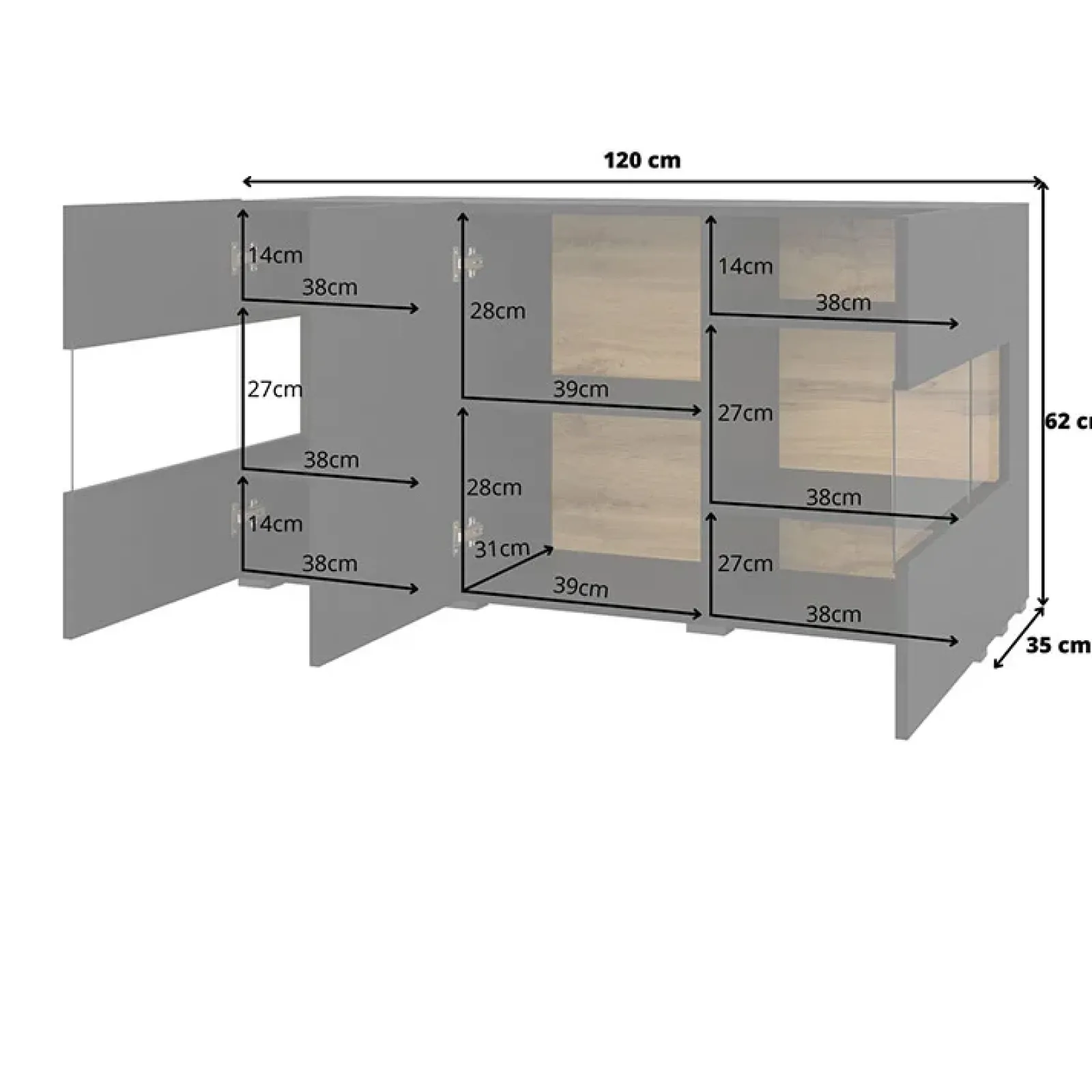 | Dimensioni | L.120,3 x H.62 x P.35,1cm |