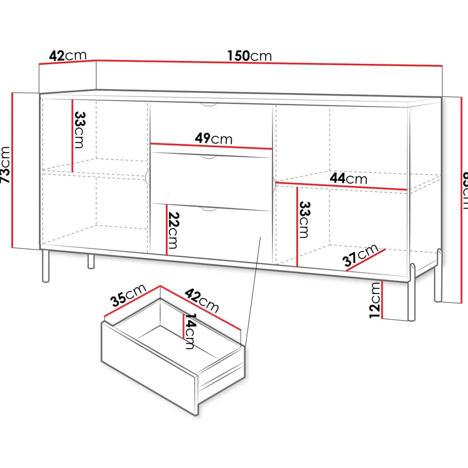 | Dimensioni | L.150 x H.85 x P.42 cm |