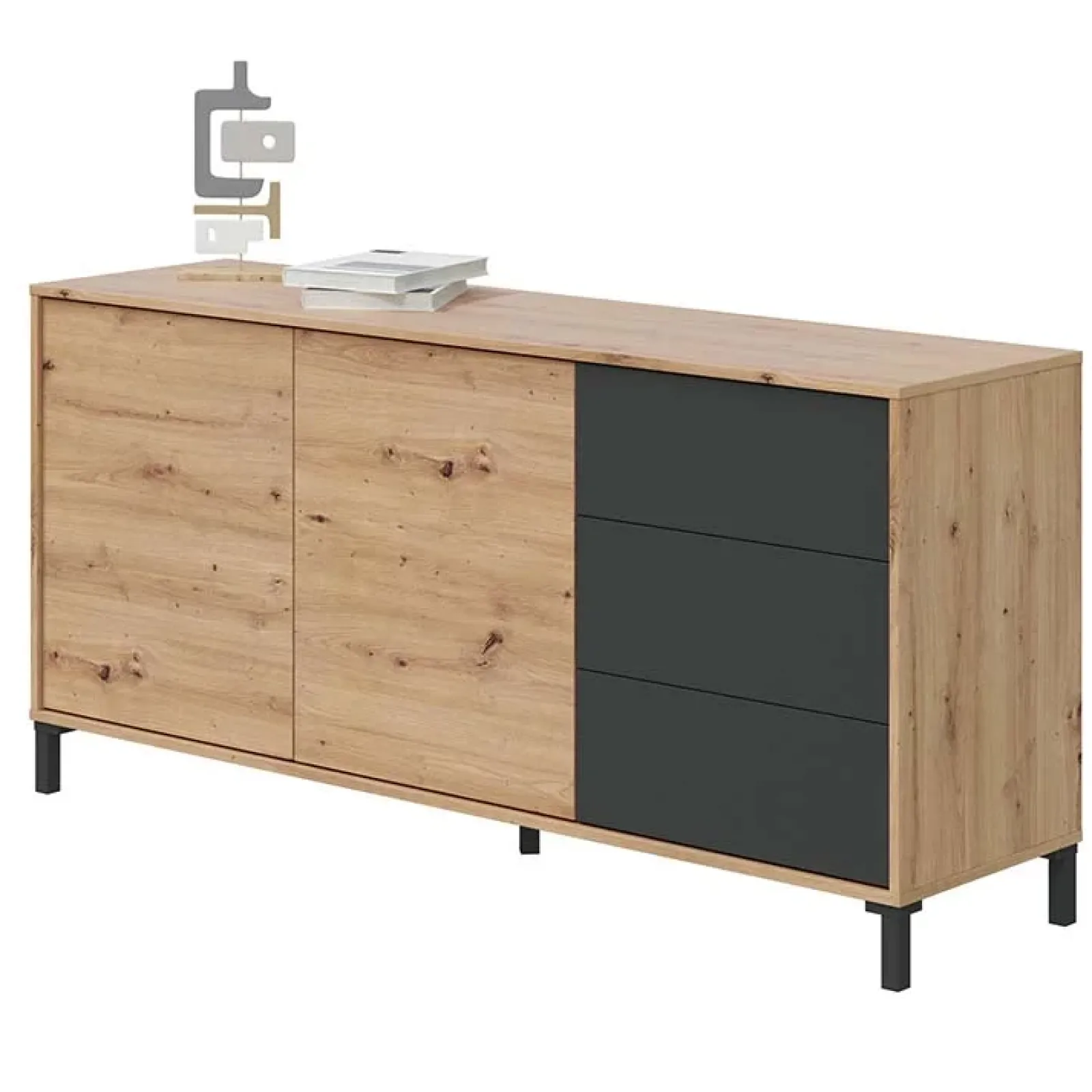 Credenza 2 ante 3 cassetti rovere nodato antracite Rory