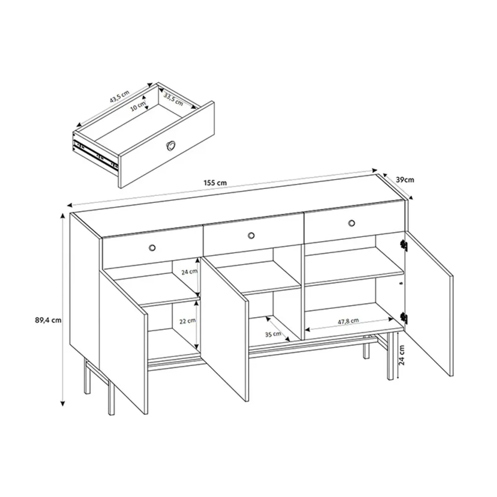 - dimensioni: L.155 x H.89.4 x P.39 cm