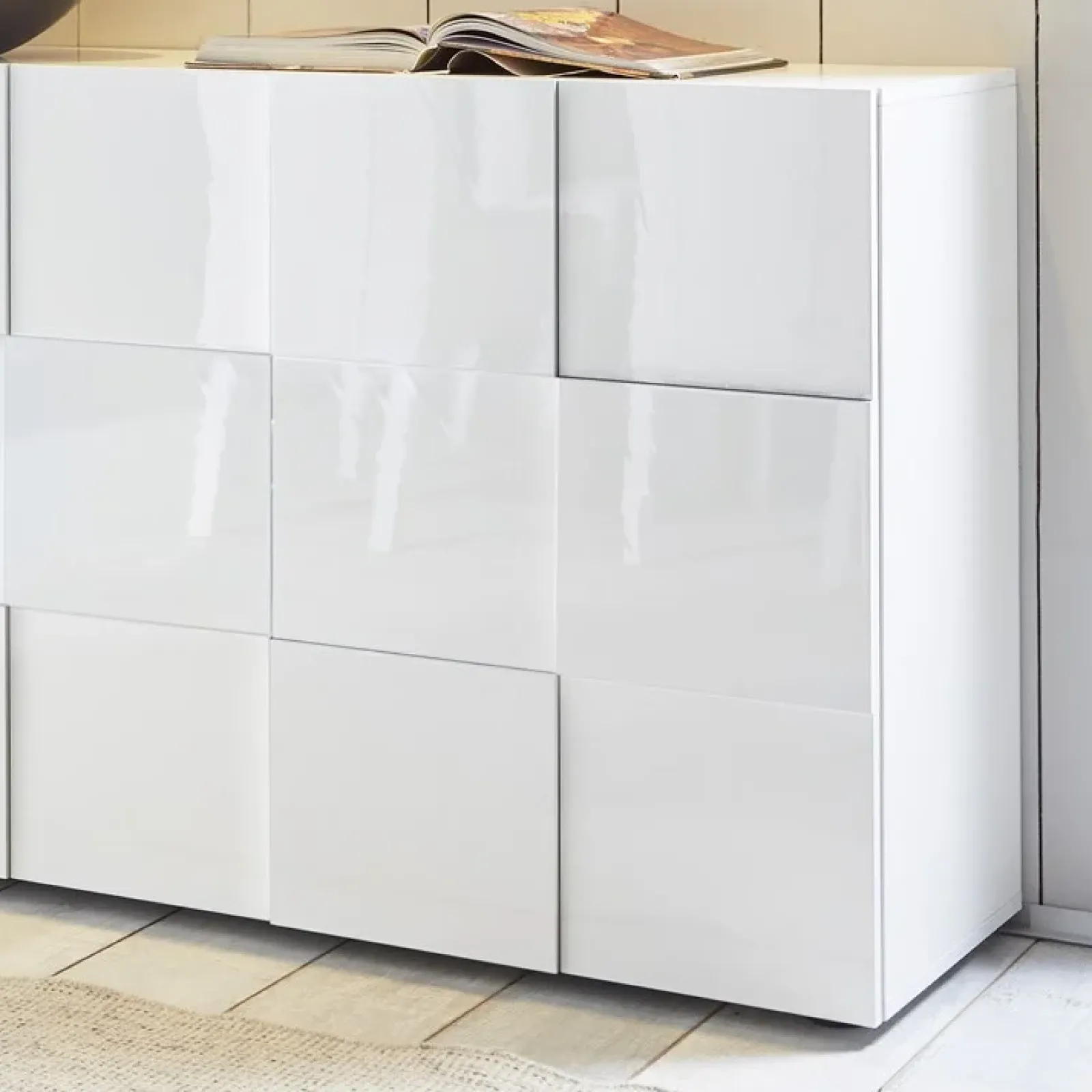 Una soluzione che racchiude l’intramontabile eleganza del bianco lucido e la pratica funzionalità del mobile da riordino. Essenziali linee geometriche delineano superfici ampie e robuste, creando così un perfetto gioco di equilibri per un complemento non solo utile, ma soprattutto esteticamente sorprendente. Dotato di 3 ante con originale decorazione a dama per offrire tanto spazio interno unitamente al fascino di una madia elegante e ricercata.