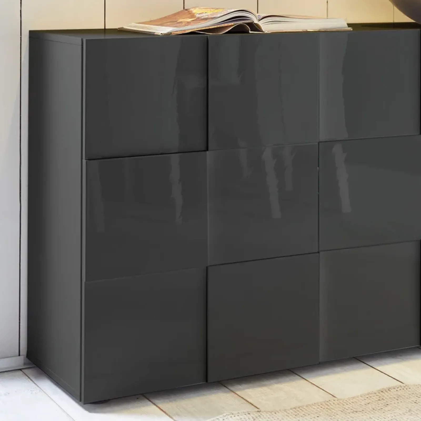 E’ una soluzione che racchiude la pratica funzionalità del mobile da riordino e l’intramontabile eleganza del grigio lucido. Questa finitura trasformerà il design del tuo salotto conferendogli quel tocco di stile che hai sempre sognato!