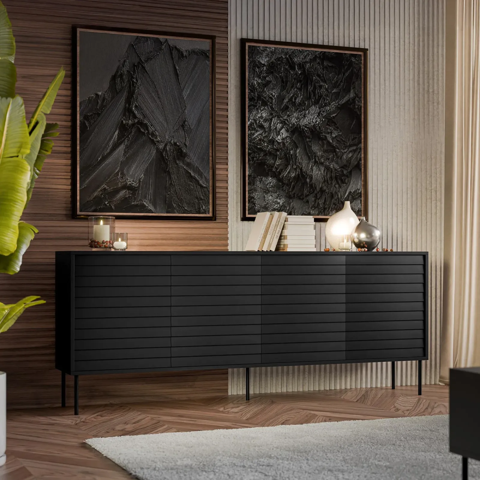 Madia soggiorno 200x80cm 4 ante nero Wild