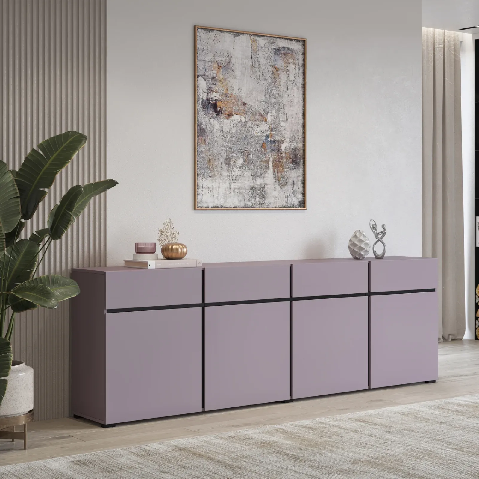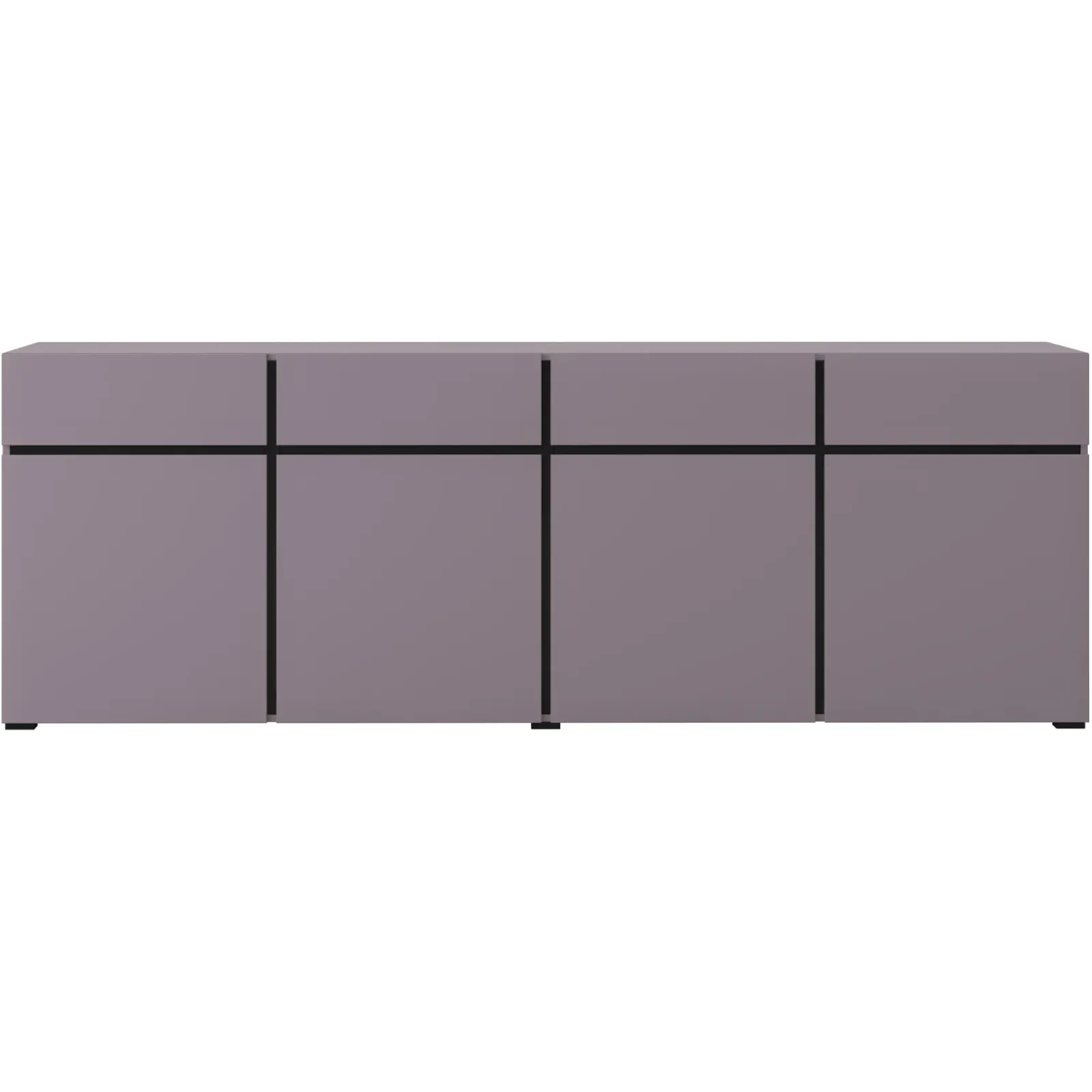 Madia moderna 225x78cm 4 ante 4 cassetti lilla nero Lolla